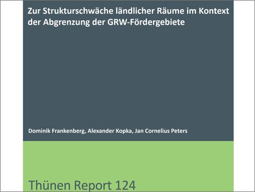 Frankenberg D, Kopka A, Peters JC (2025) Zur Strukturschwäche ländlicher Räume im Kontext der Abgrenzung der GRW-Fördergebiete. Braunschweig: Johann Heinrich von Thünen-Institut, 128 p, Thünen Rep 124, DOI:10.3220/253-2025-191