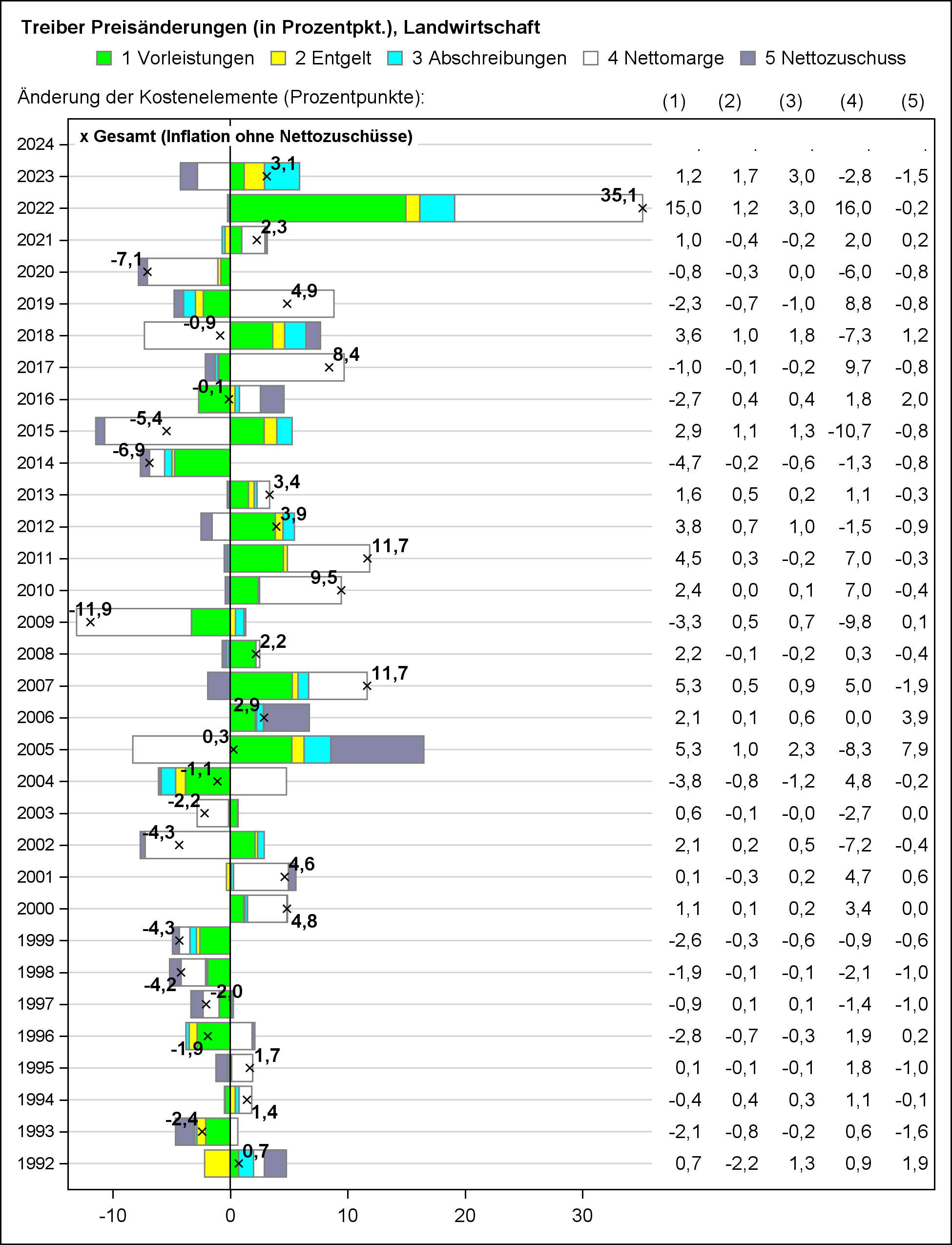 Abbildung 3: Erzeugungspreise der Landwirtschaft - Entwicklung der Inflation und ihrer Treiber