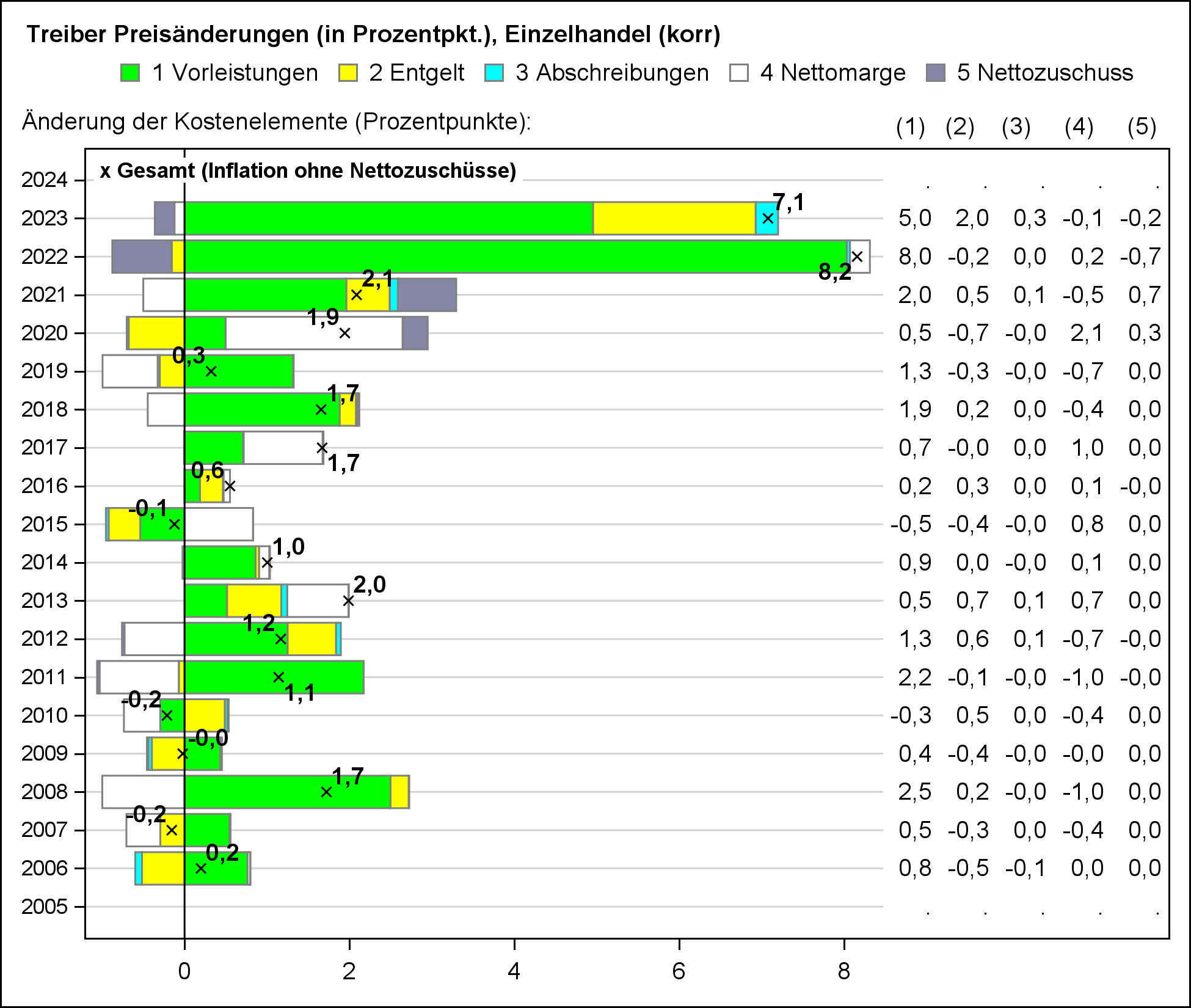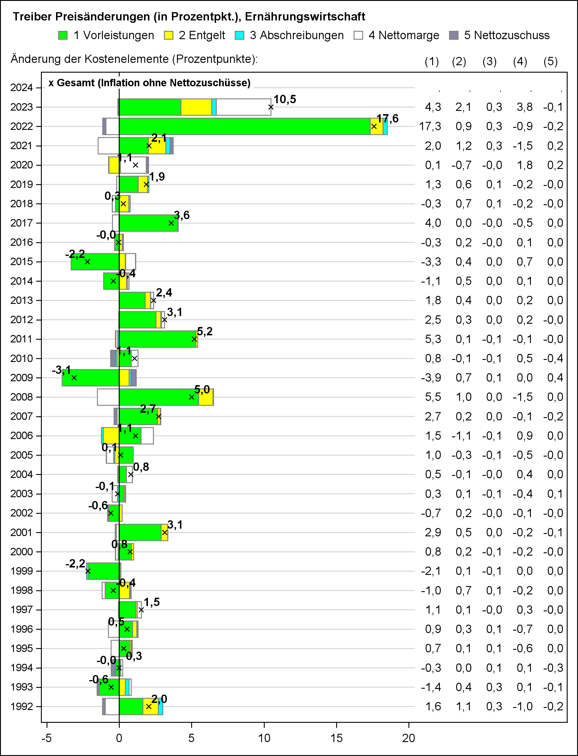 Die Preisentwicklungen lassen sich großenteils durch die Entwicklung der Vorleistungskosten erklären.