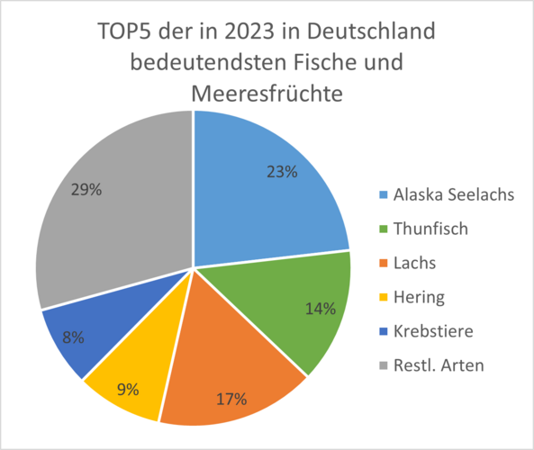 Im Jahr 2023 hat die deutsche Flotte 15% weniger gefangen, trotz einer Steigerung der Produktionsmenge der deutschen Aquakultur um 5% konnte den Rückgang nicht kompensieren.