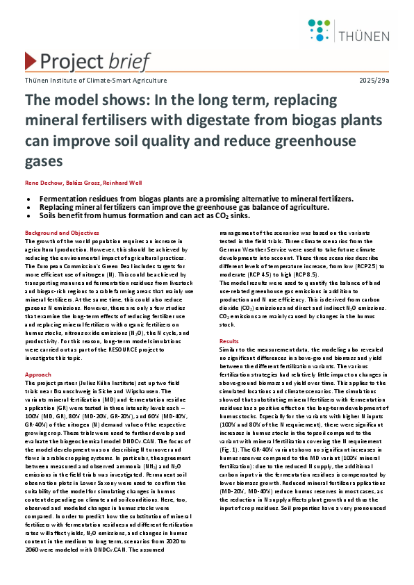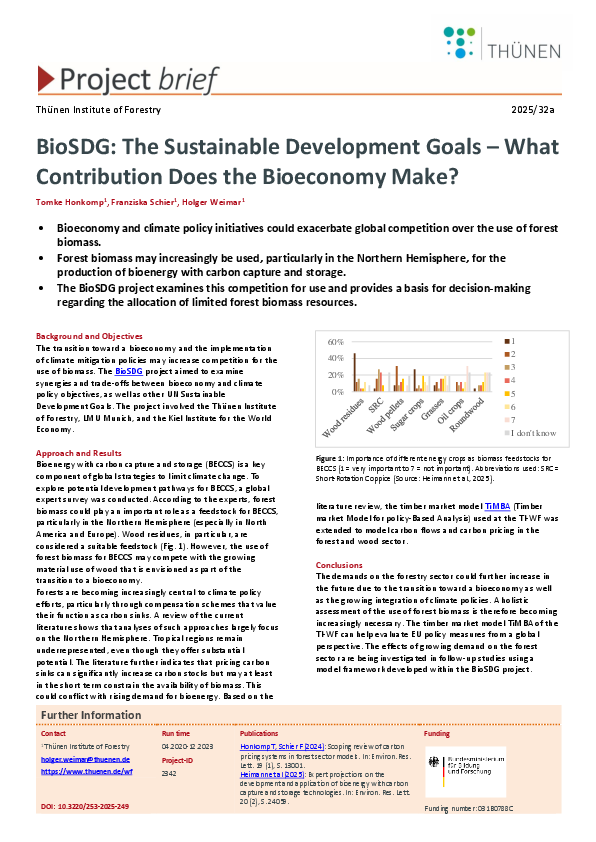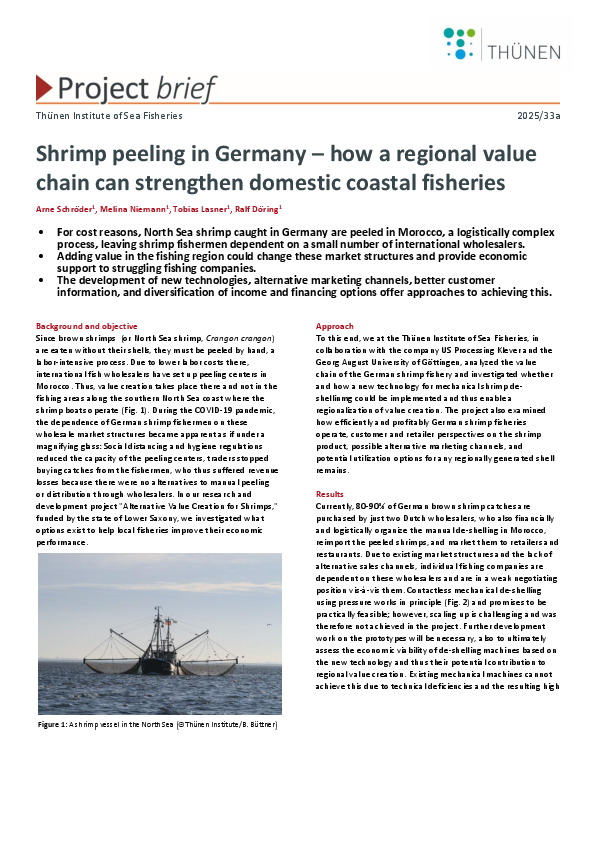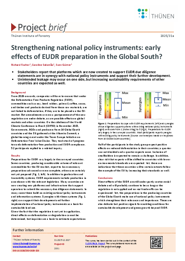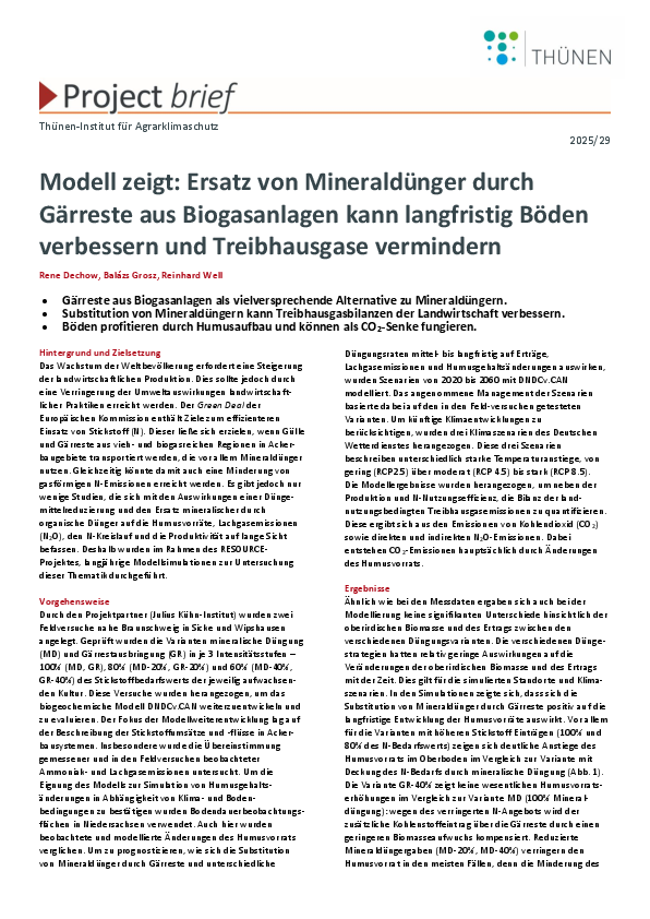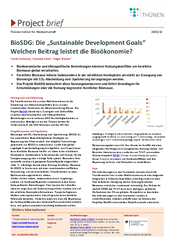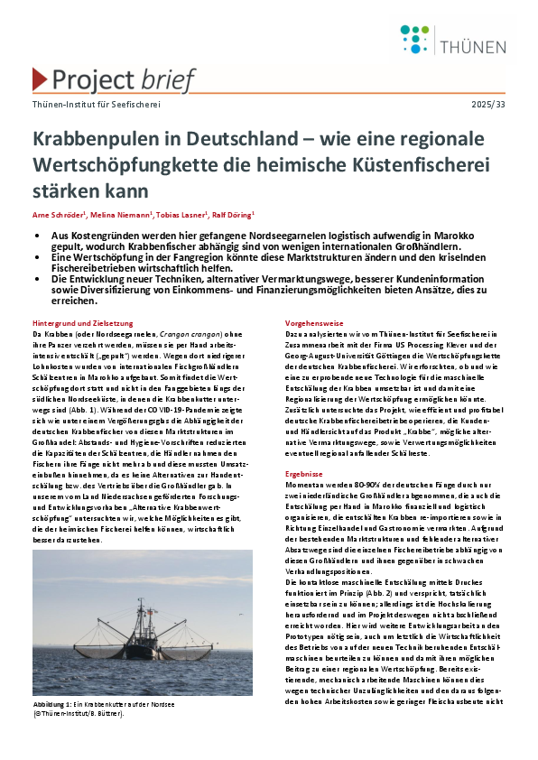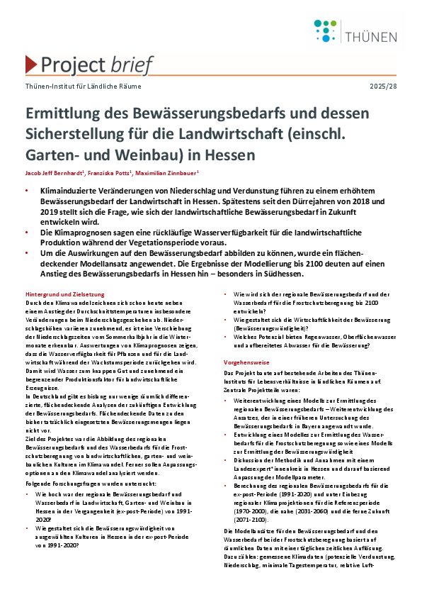 In der Reihe Project brief werden Ergebnisse aus der aktuellen Forschungsarbeit der Thünen-Fachinstitute kompakt als Ein- oder Zweiseiter dargestellt. Ein Project brief erscheint mit dem Abschluss eines Thünen-Forschungsprojekts. Die Sprache der Beiträge ist überwiegend deutsch und englisch.