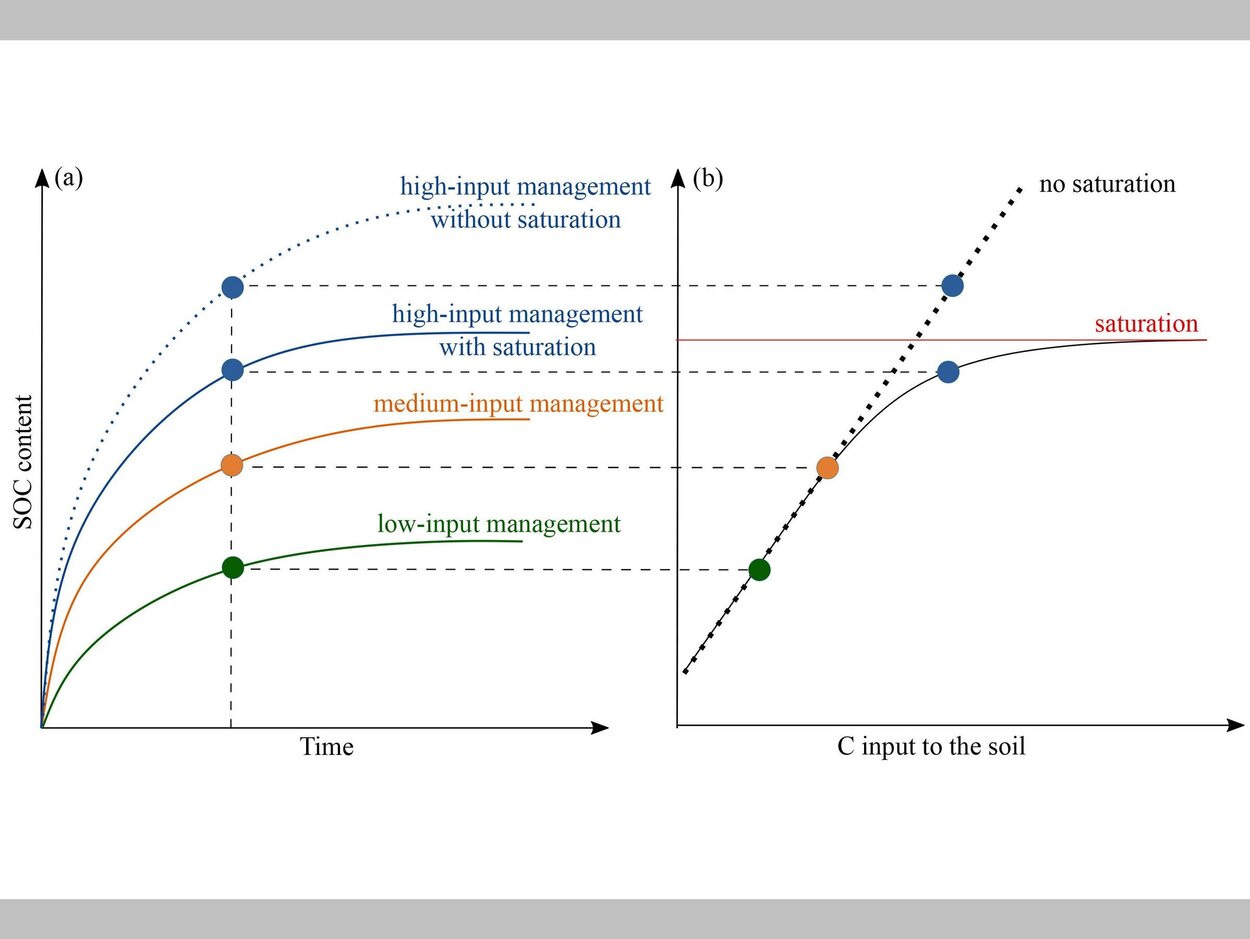 According to the concept of carbon saturation, the ability of soils to accumulate stabilized organic carbon is limited. The concept and its application are very controversial. Therefore, we wanted to test this theory using long-term field experiments. Soil samples were taken from four long-term field experiments with different and sometimes very extreme amounts of organic fertilization. The carbon inputs were sometimes five times higher than in normal agricultural practice.