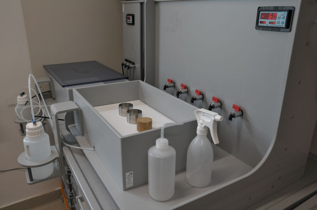 Das Bodenphysiklabor im Thünen-Institut für Waldökosysteme ist mit modernen Geräten zur Bestimmung der Wasserretention und hydraulischen Leitfähigkeit von Böden ausgestattet. Unser Schwerpunkt liegt derzeit auf der hydraulischen Charakterisierung von Böden an Punkten der Bodenzustandserhebung Wald. Hierfür werden momentan im Zuge der dritten Erhebung deutschlandweit Proben genommen und im Labor analysiert.