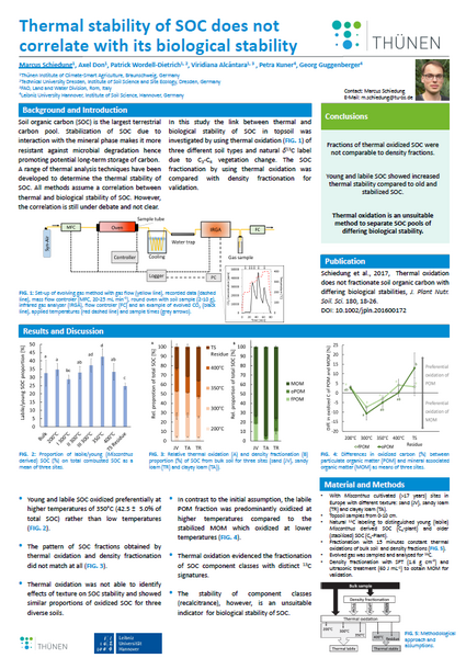 Mit seinem Poster zur thermischen Stabilität von organischer Bodensubstanz konnte er die Jury überzeugen. Das Poster basiert auf einer Publikation und zeigt, dass sich aus der Oxidation von Bodenkohlenstoff bei verschiedenen Temperaturen keine Schlussfolgerungen auf die Stabilität der organischen Substanz in Böden ziehen lassen.