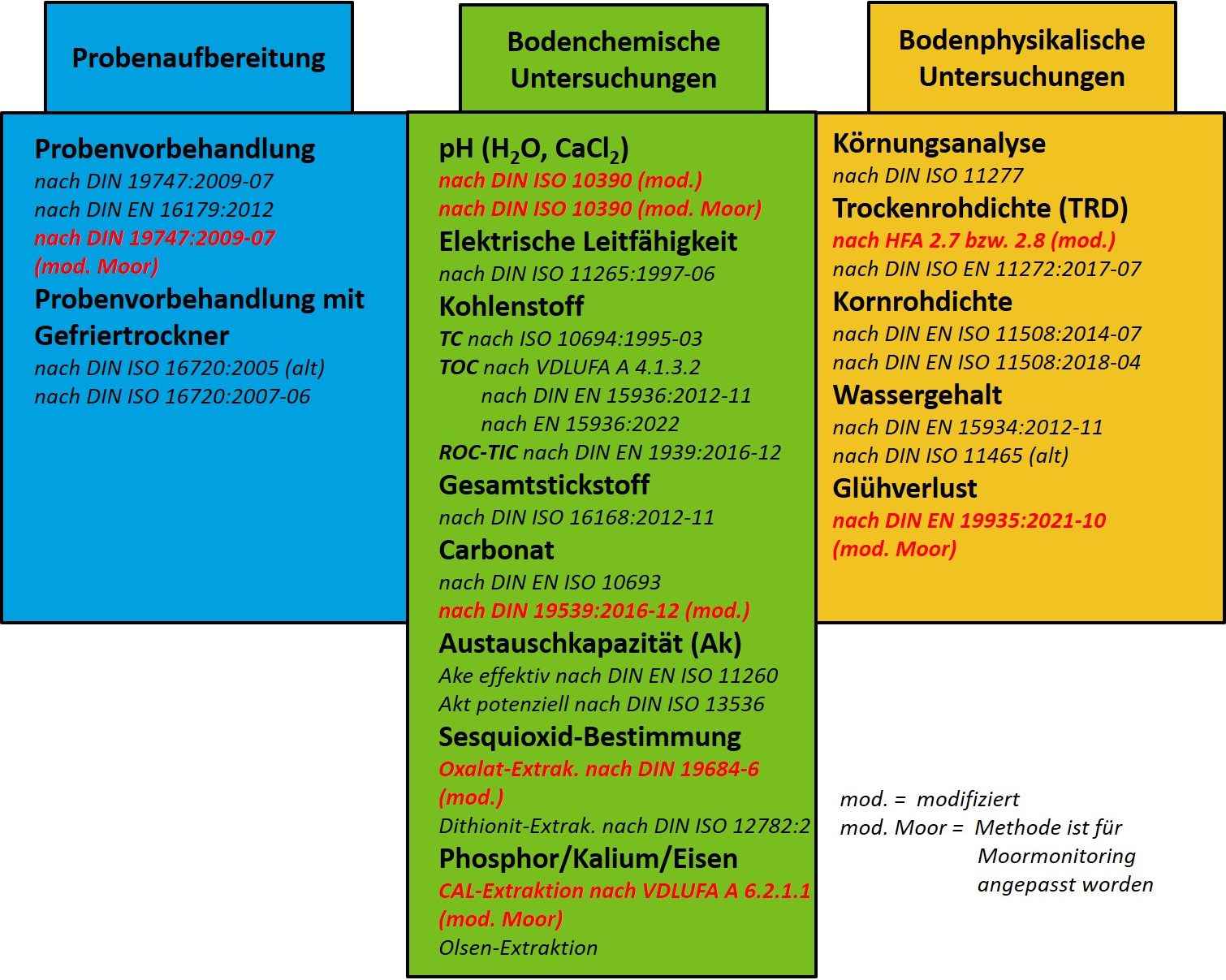 Aktuell stehen bei uns folgende Bodenaufbereitungs- und Messverfahren zur Bestimmung von chemischen und physikalischen Bodenkenngrößen zur Verfügung.