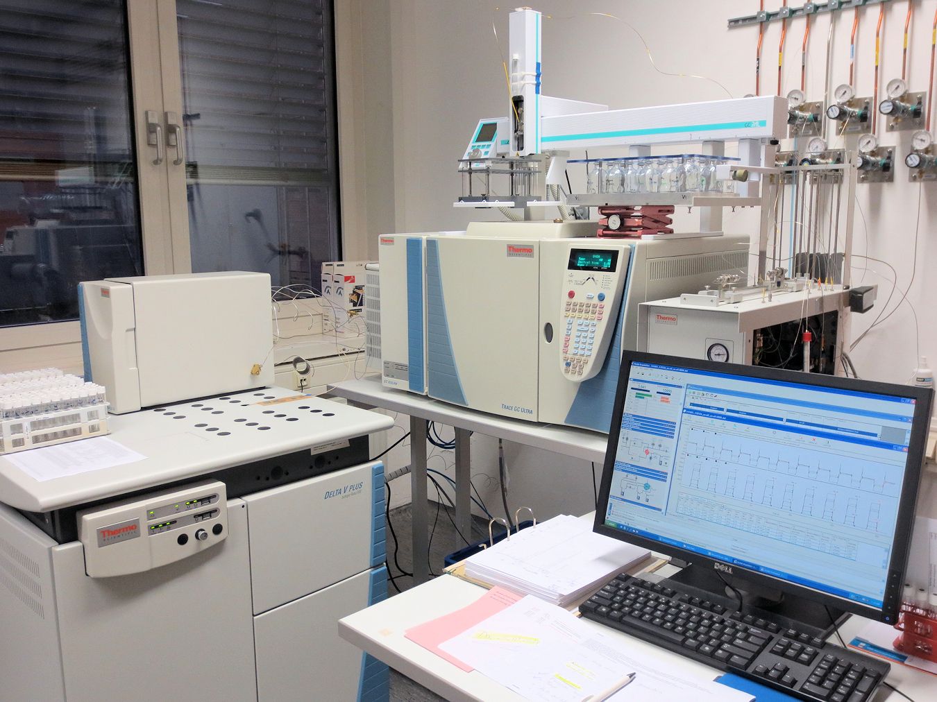 Gleichzeitige Bestimmung der N-Isotopenhäufigkeit (δ15N im N2O und N2) in gasförmigen Proben im angereicherten Häufigkeitsbereich. Durch einen eigenen Umbau der Gasbench II (Lewicka et al. 2013) können die Isotopenhäufigkeiten von δ15N im N2O+N2, δ15N im N2O und δ15N im N2 aus einer gasförmigen Probe gemessen werden.