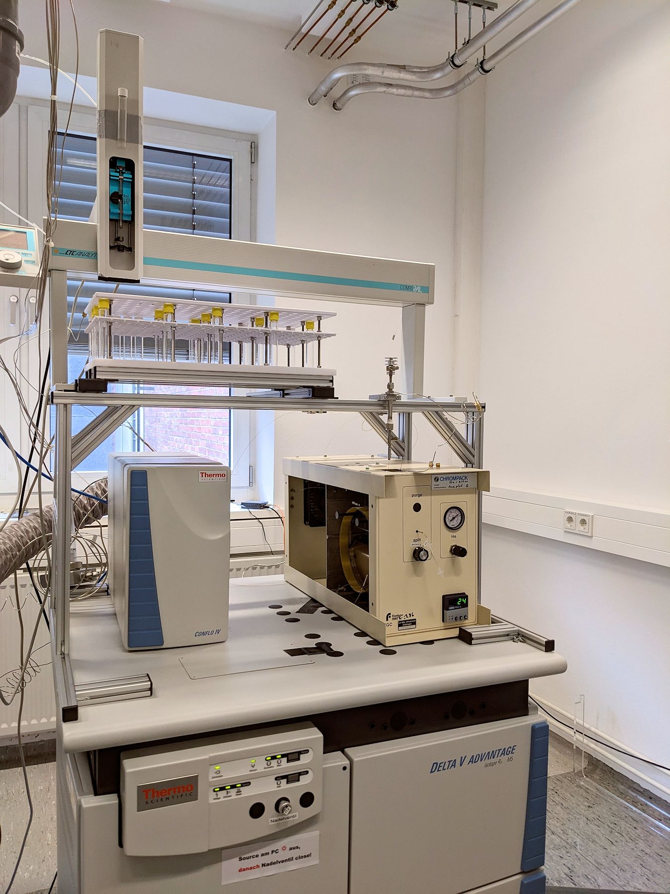 Für die Analytik von gasförmigen Proben auf ihre δ15N und δ13C Isotopenhäufigkeiten werden folgende Kombinationen aus Peripheriebausteinen und IRMS genutzt:
