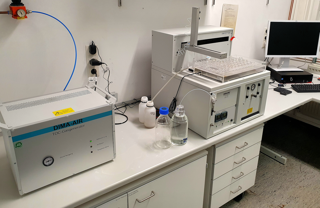 - Messung der Konzentration von gelöstem organischem Kohlenstoff (DOC) in Boden-, Grund- und Oberflächenwässern zur Bestimmung der DOC-Austräge als Teil des C-Kreislaufs