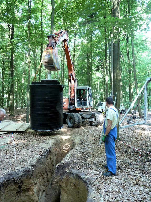 Die SUBSOM-Untersuchungsfläche wurde im Sommer 2013 eingerichtet und liegt in einem Laubwald 20 km nördlich von Hannover. Auf der Untersuchungsfläche wurden drei über zwei Meter tiefe begehbare Bodenobservatorien errichtet (siehe Fotos). Dort messen wir kontinuierlich jeweils die CO2-Konzentration in fünf verschiedenen Tiefen. Mehrmals entnehmen wir Gasproben und untersuchen sie auf Kohlenstoffalter und stabile C-Isotope. Im Herbst 2014 wird an den Observatorien 13C-markierte Streu ausgebracht, die Rückschlüsse auf den C-Transport vom Ober- in den Unterboden geben soll.