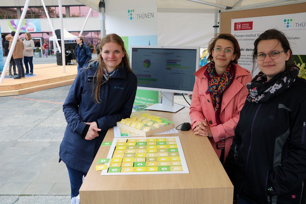 Das Thünen-Institut hat sich mit einem computergestützen Kartenspiel zur Biodiversität in Agrarlandschaften an der Veranstaltung beteiligt. Die Campus-Besucher konnten so spielerisch erfahren, wie sich moderne Landwirtschaft und Artenschutz miteinander kombinieren lassen.