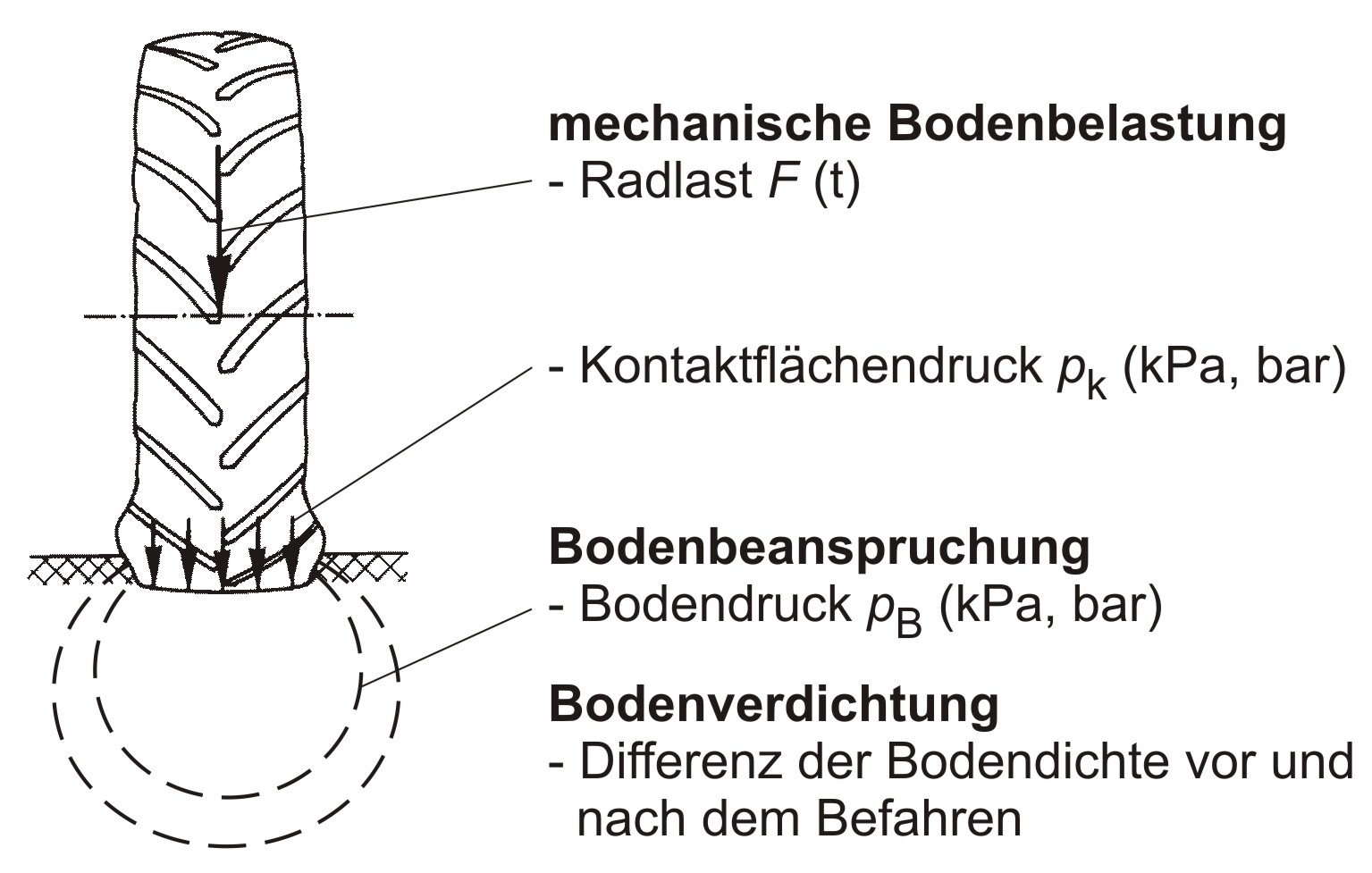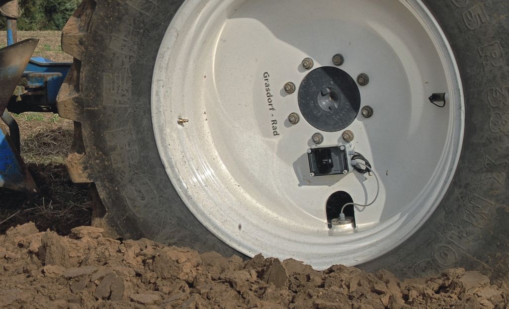 - Das Ausmaß an Bodenverdichtungen wird bestimmt durch die Lockerungsintensität bei der Bodenbearbeitung und die aktuelle Bodenfeuchte. Geräteseitig nehmen Einfluss: Radlast, Reifenausstattung und –innendruck, Kontaktfläche, Überrollhäufigkeit und Spurflächenanteil. Um den Maschinen- und Geräteeinsatz an die Verdichtungsempfindlichkeit von Standorten auf Acker/Grünland und im Wald anpassen zu können, haben wir ein Multisensorsystem entwickelt, das Bodenzustände abfragt und Fahrzeugparameter (wie z.B. den Reifeninnendruck) vollautomatisch regelt.