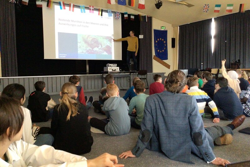 Am 17.4.2023 besuchte Dr. Jörn Scharsack vom Thünen-Institut für Fischereiökologie das Lloyd Gymnasium in Bremerhaven und informierte Schülerinnen und Schüler der 7. Klassen über das spannende Thema Munitionsaltlasten im Meer.