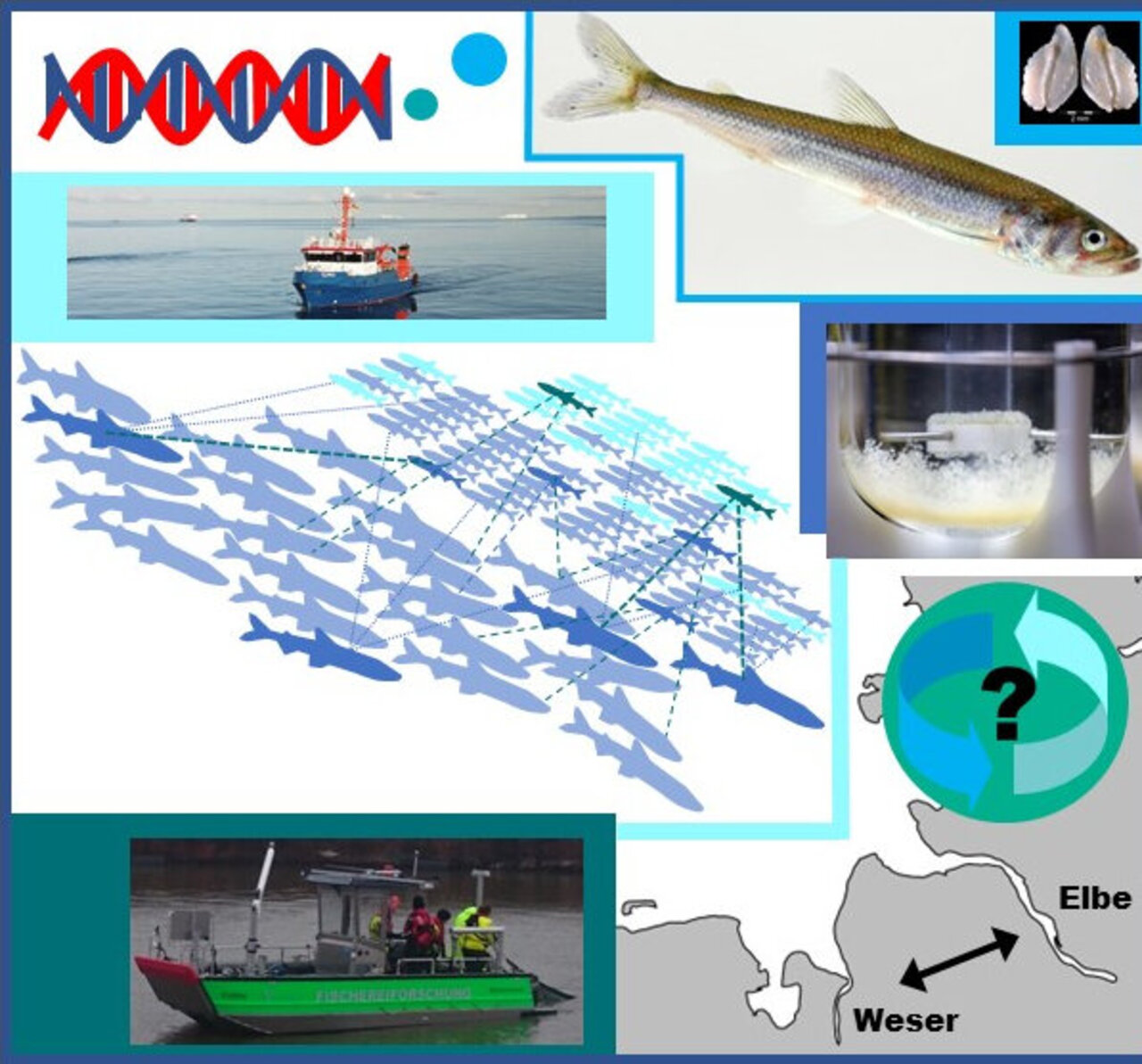 Das zentrale Vorhaben des Projektes befasst sich, am Beispiel des Europäische Stintes (Osmerus eperlanus), mit der Frage, ob auch die Bestandsgröße einer anadromen Wanderfischart mit Hilfe der molekulargenetischen CKMR Methode realistisch abgeschätzt werden kann. Hierzu soll eine geeignete Strategie der genetischen Beprobung des Bestandes entwickelt werden. Begleitend zur molekulargenetischen Beprobung für die CKMR Analysen sollen populationsbiologische Parameter mit traditionellen Methoden erhoben werden, was sowohl eine Validierung der Ergebnisse ermöglicht, darüber hinaus aber auch wichtige Parameter für eine artspezifische Modellierung der Bestandentwicklung liefern wird. Stinte gehören zur typischen Fischfauna im Küstenmeer und in den Ästuaren der großen Flüsse.