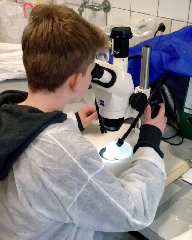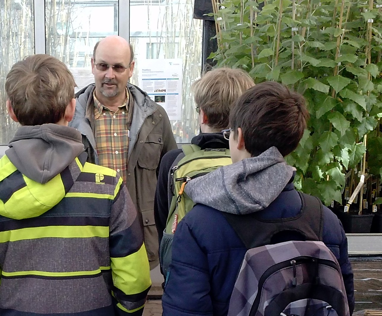 Den letzten Schultag vor den Osterferien gestaltete die siebte Klasse der Freien Waldorfschule Bargteheide anders als gewohnt. Die Schülerinnen und Schüler besuchten mit ihrem Lehrer, Herrn Fabig, am 23. März 2016 das Thünen-Institut für Forstgenetik. Drei Jahre ist an der Schule Gartenbau-Unterricht vorgesehen, sodass die Gruppe nicht ohne Vorwissen das Institut besuchen kam. Von der Zelle zur ganzen Pflanze: An drei Stationen erhielten die 12- bis 14-Jährigen Einblick in die Arbeit des Instituts und packten selbst mit an.