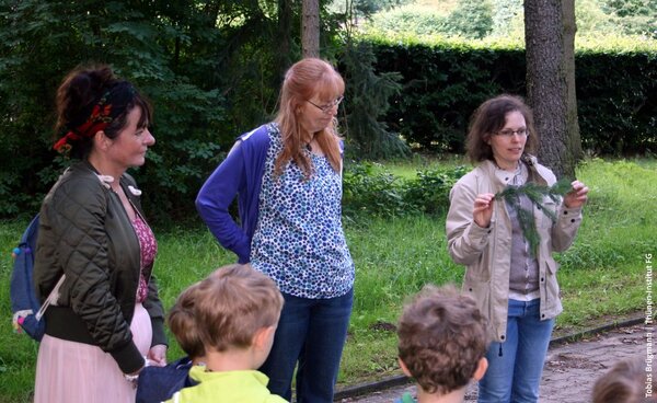 Am 17. Juli 2017 besuchten zehn Nachwuchswissenschaftler im Alter von sechs Jahren das Thünen-Institut für Forstgenetik. Die Gruppe aus der Kindertagesstätte Haberkamp in Großhansdorf hatte einen Thementag „Beruf der Eltern“ ausgerufen. Dadurch erhielten die kleinen Besucher die Möglichkeit zum Reinschnuppern in den Beruf von Thünen-Wissenschaftlerin Céline Blanc-Jolivet. Zusammen mit Stefanie Palcewski wurden die Kinder als Baum-Detektive tätig und machten sich auf die Suche nach den richtigen Bäumen im Arboretum des Instituts. Highlight war bestimmt die Ernte von kleinen Zweigen unter fachkundiger und altersgerechter Anleitung unseres Außenteams Matthias Wellern und Dieter Boedecker. Mit einer Zwille wurden Gewichte in die Höhe geschossen, mit voller Motivation die Astkrone zu erreichen. Eine solche Zwille wird im Institut für Forstgenetik verwendet, um Blätter und kleine Äste aus größerer Höhe zu ernten. Ein Besuch der Gärtnerei mit kleinen Baum-Stecklingen rundete den Besuch ab, der für die Gäste sicherlich ein abwechslungsreicher Tag war, bevor die Ferien beginnen.