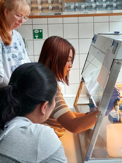Vom 06. bis 10. Oktober waren drei WissenschaftlerInnen vom Forest Products Research and Development Institute (FPRDI) in Los Banos (Philippinen) zu Besuch am Thünen-Institut für Forstgenetik. Michelle Arreana Cruz (Genetikerin), Glenn Estudillo (Förster und Holzanatom) und Jennifer Conda (Botanikerin) absolvierten einen Trainingskurs in DNA-Extraktion, Barcoding und Methoden der Rückverfolgung von Holz und Holzprodukten.
