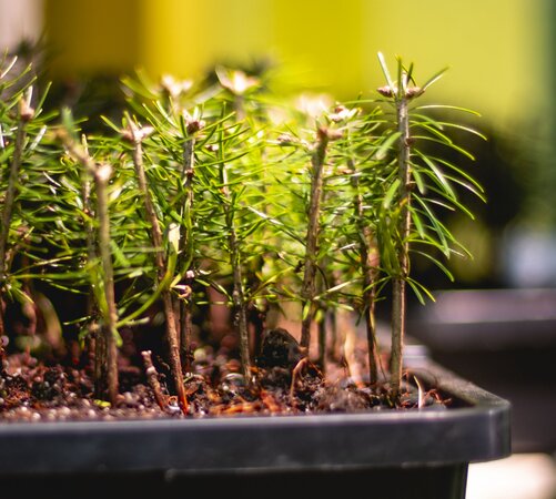Die Forschenden konnten den Besuchern zeigen, dass die verschiedenen Baumarten unterschiedlich gut mit den Klimaänderungen zurechtkommen. Anhand eines Trockenstressversuches mit Laubbäumen direkt am Stand wurde verdeutlicht, dass es auch innerhalb der Baumarten genetisch bedingte Unterschiede in der Trockentoleranz gibt. Die Forschung des Institutes zu alternativen Baumarten mit besserer Anpassung an den Klimawandel wurde anhand eines Filmes zur Hainbuche präsentiert. Im Fokus der aktuellen Forschung stehen aber auch verschiedene Nadelbaumarten, da die Holzwirtschaft auch zukünftig auf Nadelholz angewiesen ist. So konnten die Besucher und Besucherinnen am Stand selbst ihre eigene kleine Weißtanne oder Douglasie eintopfen. Diese Aktion hat reges Besucherinteresse gefunden und zu interessanten Gesprächen über klimaangepasstes forstliches Vermehrungsgut geführt.