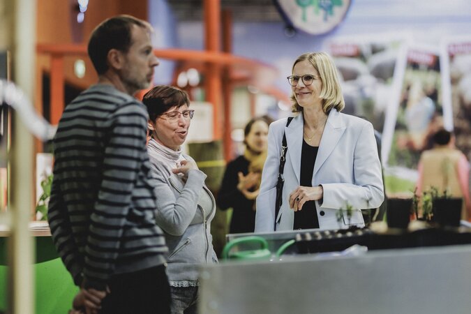 Unter den Gästen am Stand waren auch Cem Özdemir, der Bundesminister für Ernährung und Landwirtschaft und Bundesminister für Bildung und Forschung, Klara Geywitz, die Bundesministerin für Wohnen, Stadtentwicklung und Bauwesen und Prof. Dr. Birgit Kleinschmit, die designierte neue Thünen-Präsidentin.