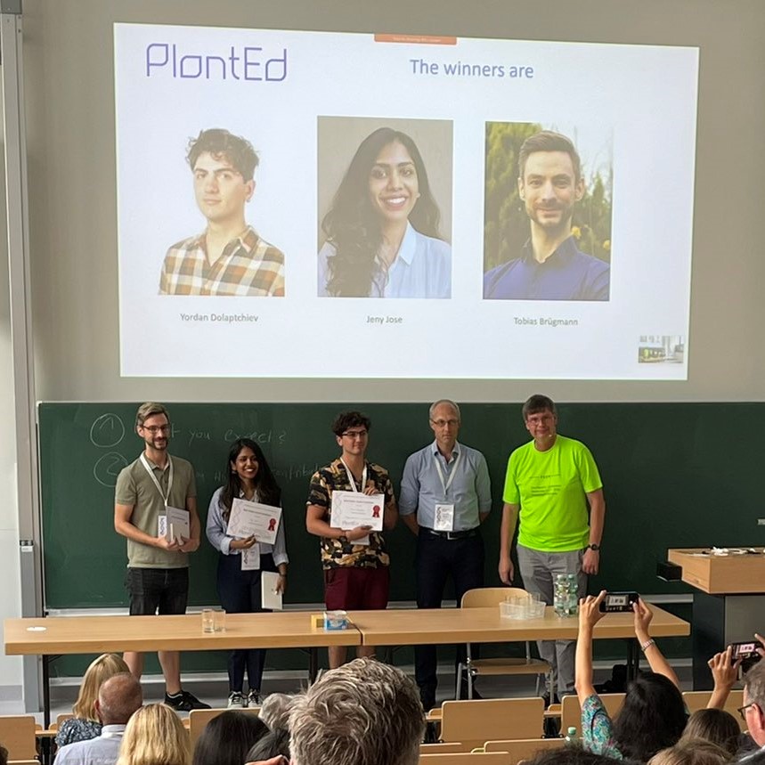 Erfreuliches Ende der Tagung vom 5. bis zum 7. September: Das Poster von Tobias mit dem Titel "On track towards DNA-free genome editing", das über die gemeinsamen Forschungen mit Gastwissenschaftler Stefano Biricolti, Matthias Fladung und Dirk Becker von der Universität Hamburg berichtet, kam sehr gut bei den Tagungsbesuchern an. Tobias wurde dafür mit einem von drei Posterpreisen der Tagung ausgezeichnet.