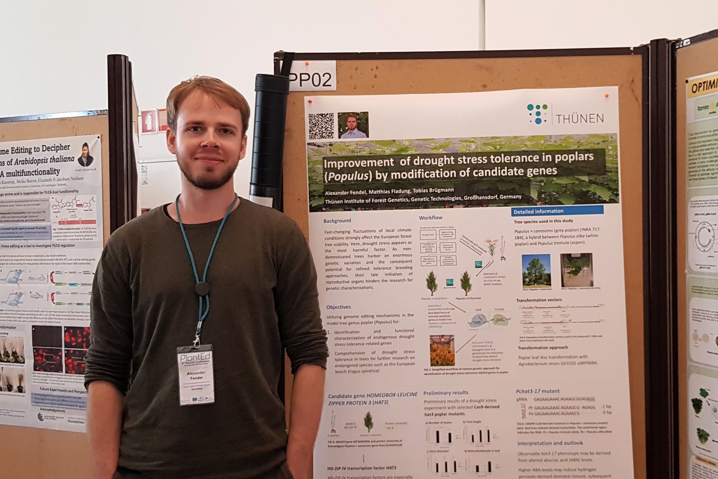 Fendel A, Fladung M, Brügmann T (2022) Improvement of drought stress tolerance in poplars (Populus) by modification of candidate genes. In: COST Action CA18111 "Genome Editing in Plants" : Book of Abstracts ; 3rd PlantEd Conference, 5 - 7 September 2022, Düsseldorf, Germany. p 35