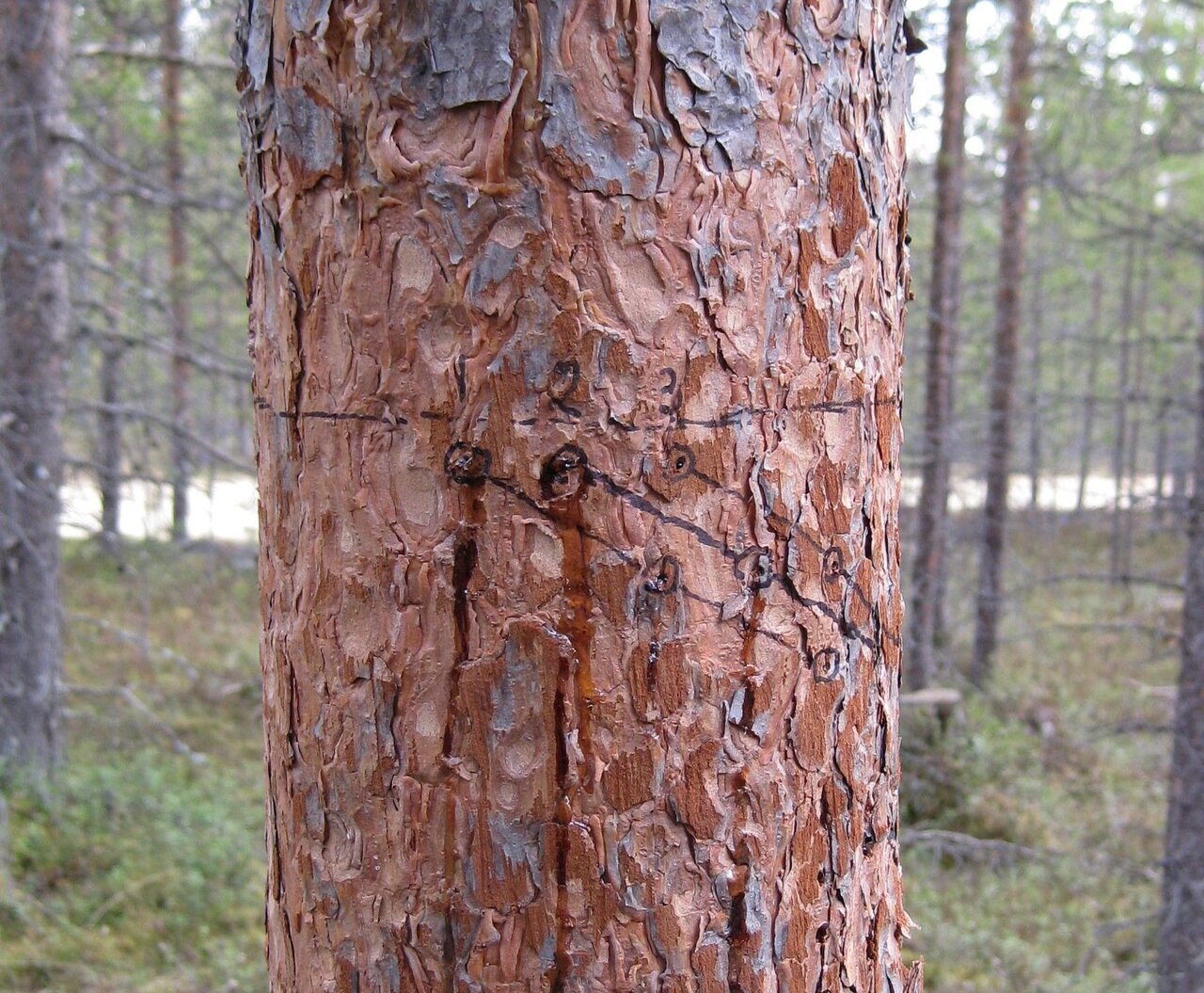 Für Kiefern der borealen Zone wurde über einen Zeitraum von fünf aufeinanderfolgenden Jahren die Holzbildungsdynamik (Jahrring-spezifisch) untersucht. Ein Vergleich von Bäumen an zwei Standorten, einer nahe der Baumgrenze und einer etwa 200 km südlich davon, ergab einen verzögerten Beginn und ein früheres Ende der Holzbildung für den Baumgrenzen-Standort. Etwa zwei Drittel eines jeden Jahrrings bildeten Bäume beider Standorte in einem Zeitraum von nur vier Wochen zwischen Mitte Juni und Mitte Juli, unabhängig davon, ob die Holzbildung früher oder später einsetzt. Die Dauer der Holzbildung erstreckte sich über einen Zeitraum von sieben Wochen bei Bäumen am Baumgrenzen-Standort und neun Wochen bei Bäumen des südlicheren Standortes. Die Frühholzbildung scheint am südlicheren Standort positiv mit der Sommertemperatur einherzugehen, während am nördlicheren Baumgrenzen-Standort keine entsprechende Korrelation festzustellen war. An beiden Standorten und für alle Untersuchungsjahre begann die Holzbildungs-Aktivität des Kambiums nach Erreichen von 12, 5% des standortspezifischen jährlichen Wärmesummen-Mittels. Möglicherweise ist die Kambium-Aktivität am nördlicheren Standort durch eine Kombination aus Bodenfeuchte-Defizit nach wenig Schneefall im Mai und überdurchschnittlich hohen Temperaturen von Mai bis Juli beeinträchtigt.