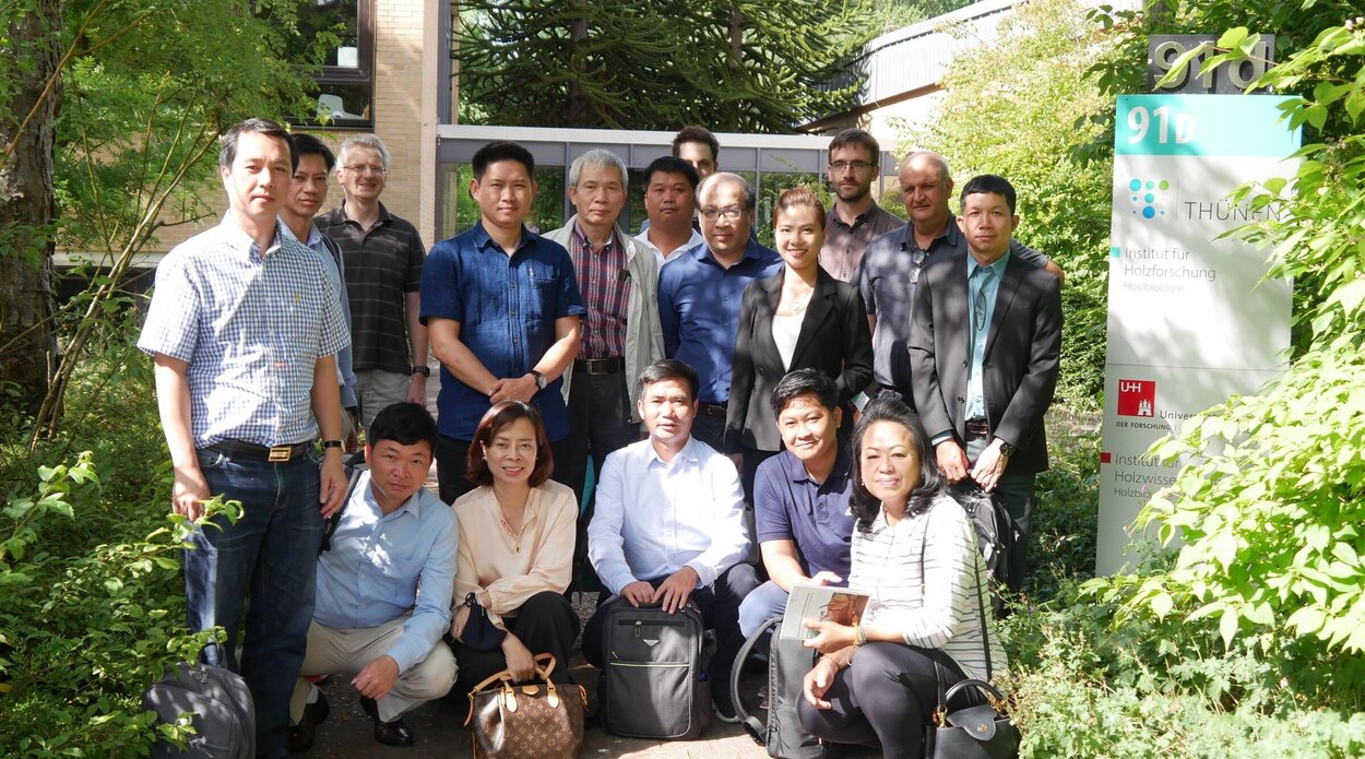 Im Rahmen des Globalvorhaben Forests4Future (F4F) https://www.giz.de/en/worldwide/85060.html der deutschen Gesellschaft für Internationale Zusammenarbeit (GIZ) hat eine Expertengruppe aus Laos und Vietnam das Thünen-Institut für Holzforschung am 18.07. besucht, um sich über die Arbeiten und Forschungen auf dem Gebiet der anatomischen Holzartenbestimmungen zu informieren. Der Besuch ist Teil einer Fachexkursion von Vertretern aus Wirtschaft und Aufsichtsbehörden zum Thema: „Umsetzung von Holzhandelsvorschriften des Vereinigten Königreichs und der Europäischen Union“. Im Auftrag des Bundesministeriums für wirtschaftliche Zusammenarbeit und Entwicklung (BMZ) unterstützt die GIZ internationale Projekte für einen legalen Holzhandel gemäß dem FLEGT-Aktionsplan der Europäischen Union. Die Arbeiten des Thünen-Instituts für Holzforschung leisten hierfür einen wichtigen Beitrag, um die Deklarationen international gehandelter Hölzer und Holzprodukte zu prüfen.