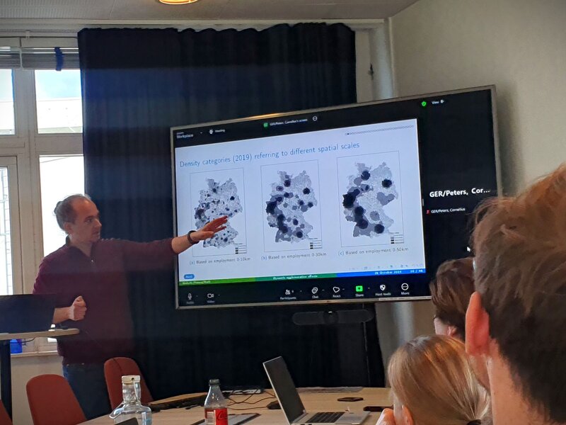 Im Rahmen seines Aufenthaltes hat Jan Cornelius Peters zudem eine neue Forschungsarbeit mit Annekatrin Niebuhr (Institut für Arbeitsmarkt- und Berufsforschung, Universität Kiel) und Duncan Roth (Institut für Arbeitsmarkt- und Berufsforschung, IZA) im Brown Bag Seminar in Economics and Finance der Jönköping International Business School (JIBS) vorgestellt. Aufbauend auf eine von ihnen kürzlich in Regional Science and Urban Economics veröffentlichte Studie erforschen Annekatrin Niebuhr, Jan Cornelius Peters und Duncan Roth weiter die Zusammenhänge zwischen der räumlichen Verteilung ökonomischer Aktivität, der Art der Arbeitserfahrung, die Arbeitskräfte an unterschiedlichen Orten sammeln und räumlichen Unterschieden im Lohnwachstum im Verlauf individueller Erwerbsleben.