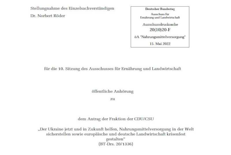 - Nennenswerte Steigerung der Agrarproduktion in Deutschland frühestens zum Sommer/Herbst 2023 möglich