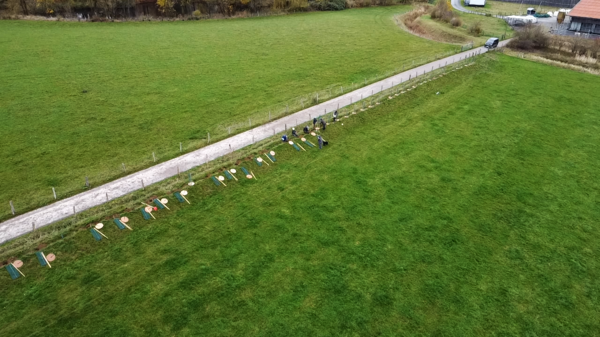 Mit dem Blick auf zukünftige Forschungsfragen zu tatsächlichen Effekten auf dem Weg zu einer multifunktionalen Landwirtschaft haben wir im Frühjahr 2024 und im Herbst/Winter 2024/2025 verschiedene Agroforstsysteme auf 30 ha Acker- und Grünlandflächen des Instituts für Ökologischen Landbaus angelegt. Diese werden künftig mit den neuen Baumreihen darin weiter für die Landwirtschaft genutzt.