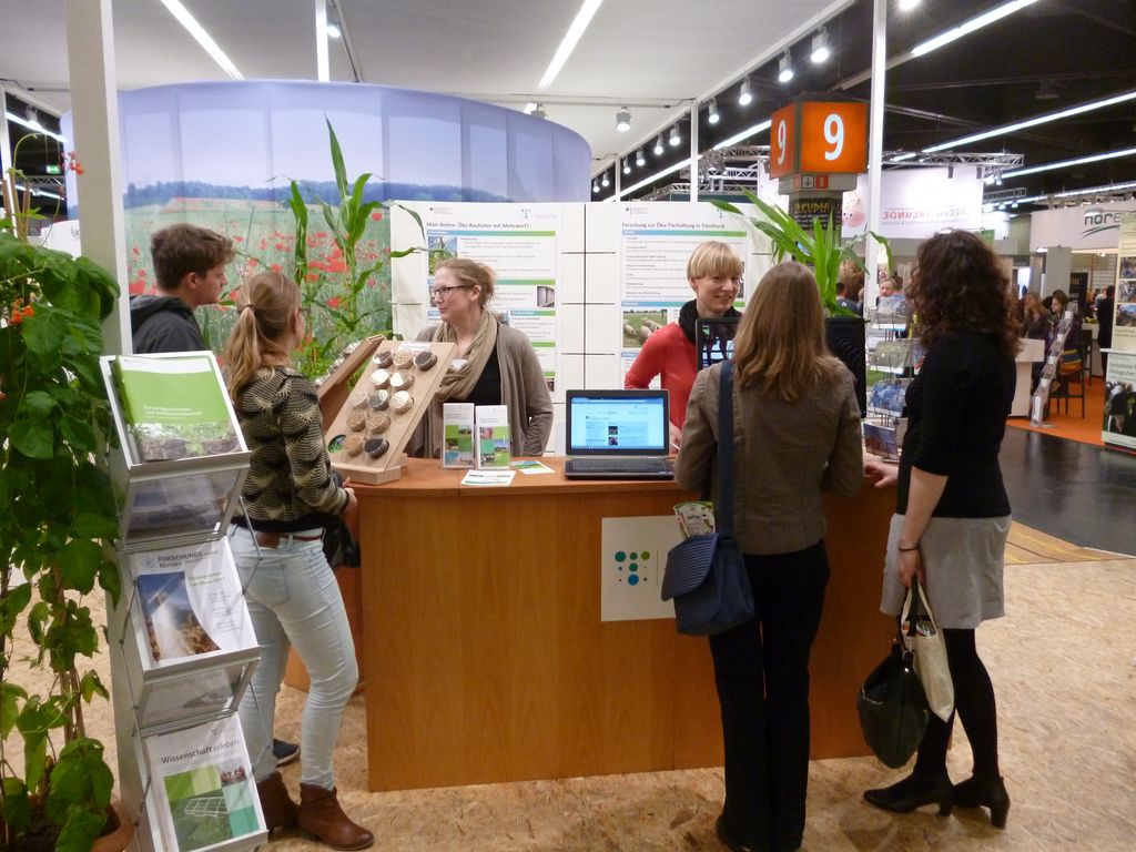 Im Februar informierten wir auf der Biofach in Nürnberg und auf der Fachtagung Perspektiven für den Ökolandbau des MELUR auf dem NORLA Gelände Rendsburg mit einem Informationstand über unsere Forschung. Unsere engagierten WissenschaftlerInnen stellten neue kreative Exponate zusammen, z.B.: die Klapptafeln „Was forschen wir am Thünen-Institut für Ökologischen Landbau?“ und die Sammlung zur „Erkundung der Vielfalt der Körnerleguminosen“. Gemeinsam mit unserem Filmprofi Immo Sennewald von der Pressestelle in Braunschweig entstanden Kurzfilme zur ökologischen Produktion und Forschung in Trenthorst. Die zwei Meter hohen Pflanzenexponate zum gemeinsamen Anbau von Mais mit Stangen- und Feuerbohnen wurden von den KollegInnen im Gewächshaus des Thünen-Instituts für Forstgenetik in Großhansdorf herangezogen. Vom 15.-18. November ist unser Thünen-Institut für Ökologischen Landbau mit dem Schwerpunkt „Weidehaltung“ auf der Eurotier in Hannover vertreten.