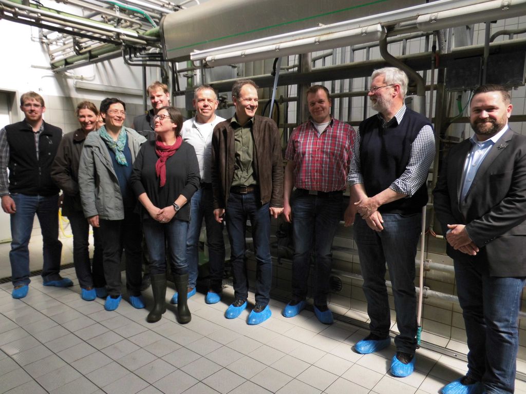 Von der Leistungszucht über die Fütterung bis zur Milchqualität reichen die Themen, die von den Milchviehversuchsbetrieben in Schleswig-Holstein experimentell bearbeitet werden. Insgesamt fünf solcher Betriebe gibt es im Land und sie spiegeln die Vielfalt der Milchproduktion wieder. Während die Landwirtschaftskammer mit dem Betrieb in Futterkamp klar auf den unmittelbaren Praxisbezug setzt, geht es an den universitätseigenen Standorten neben der angewandten Forschung auch um wissenschaftliche Grundlagen. Mit Karkendamm und dem Lindhof verfügt die Christian-Albrechts-Universität nun über zwei Milchviehherden ganz unterschiedlicher Ausrichtung – auf der einen Seite blickt man auf die hoch spezialisierte Holsteiner Milchkuh, auf der anderen Seite möchte man mit Jerseykühen möglichst viel Milch mittels Weidewirtschaft gewinnen. Die Versuchsbetriebe des Bundesministeriums für Landwirtschaft und Ernährung ergänzen dieses Spektrum. Das Thünen-Institut für Ökologischen Landbau in Trenthorst beschäftigt sich mit der Nachhaltigkeit der ökologischen Milchproduktion und verschiedenen Aspekten des Tierwohls. Den Bogen zur Produktqualität und Lebensmittelsicherheit, und somit letztendlich auch zum Verbraucher, schlägt der Versuchsbetrieb des Max Rubner-Instituts in Schädtbek, der unter anderem auch Rückstände in der Milch, auch von Arzneimitteln, im Fokus hat. Wenn es um experimentelle Forschung rund um die Milchviehhaltung geht, bietet Schleswig-Holstein also beste Voraussetzungen. Um diese noch besser nutzbar zu machen, trafen sich am 2. Mai Wissenschaftler, Betriebsleiter und Herdenmanager der fünf Milchviehversuchsbetriebe auf Einladung des Thünen-Instituts in Trenthorst. Nach einer Einführung in die laufenden Forschungsprojekte konnte bei bestem Wetter der Versuchsbetrieb besichtigt werden. Der Milchviehstall ist speziell für bestimmte Forschungsfragen konzipiert. So können zwei komplett getrennte Teilherden unter den gleichen Haltungs- und Managementbedingungen verglichen werden. Bis zum letzten Jahr wurden dabei Rotbunte DN und Deutsche Holstein hinsichtlich ihrer Eignung für den Ökolandbau einander gegenübergestellt. Demnächst werden behornte und genetisch hornlose Deutsche Holstein-Kühe untersucht. Eine Besonderheit im Trenthorster Betrieb ist die Aufzucht von Kälbern durch ihre Mütter. Seit mehr als zehn Jahren werden Versuche zur sogenannten muttergebundenen Kälberaufzucht durchgeführt. Das Themenspektrum reicht dabei von der Gesundheit der Kälber über die Melkbarkeit der Kühe bis hin zu den langfristigen Auswirkungen dieser Aufzuchtform auf das Verhalten der Tiere. Die Minimierung des Antibiotikaeinsatzes beim Trockenstellen sowie der Einsatz von Mais-Stangenbohnen-Silage in der Milchviehfütterung sind weitere Forschungsschwerpunkte. Neben den Experimenten ging es in den Gesprächen der Teilnehmer auch immer wieder um das ganz praktische Herdenmanagement auf den Versuchsstationen. Trotz der Vielfalt der Versuchsansätze sehen sich doch alle oftmals mit den gleichen Problemen konfrontiert. Der Erfahrungsaustausch soll jedoch nur einen Teil der zukünftigen Kooperation zwischen den Versuchsbetrieben bestimmen. Die Gruppe möchte vielmehr Anknüpfungspunkte für die Forschung finden, denn die unterschiedliche Ausrichtung der Versuchsbetriebe sichert die Übertragbarkeit von gemeinsam erarbeiteten Forschungsergebnissen in die ebenso vielfältige landwirtschaftliche Praxis. Und darüber, dass dies ein Standortvorteil für Schleswig-Holstein ist, der viel stärker genutzt werden sollte, waren sich alle Teilnehmer des Treffens einig.