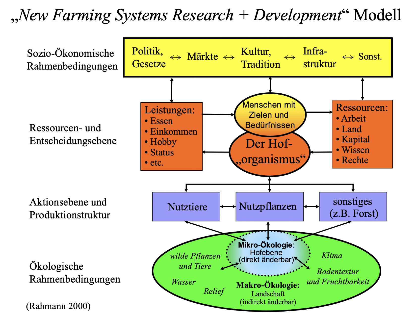Dabei geht es auch um Impulse für die Weiterentwicklung des Ökolandbaus in Deutschland und anderswo auf der Welt. Beispielshaft wurden bereits Permakultur (Gartenbau; Mollison & Holmgren 1990), Holistic Management (Weidemethoden in Trockensavannen; Savory & Butterfield 1988), Novel Food systems (Insekten, Algen, „künstliches“ Essen, Aquaponics; Rahmann et al. 2020), Urban Agriculture (Städtisches Umfeld; Stierand 2008) und Vertragsnaturschutz (Europa; Rahmann 2000) bearbeitet.