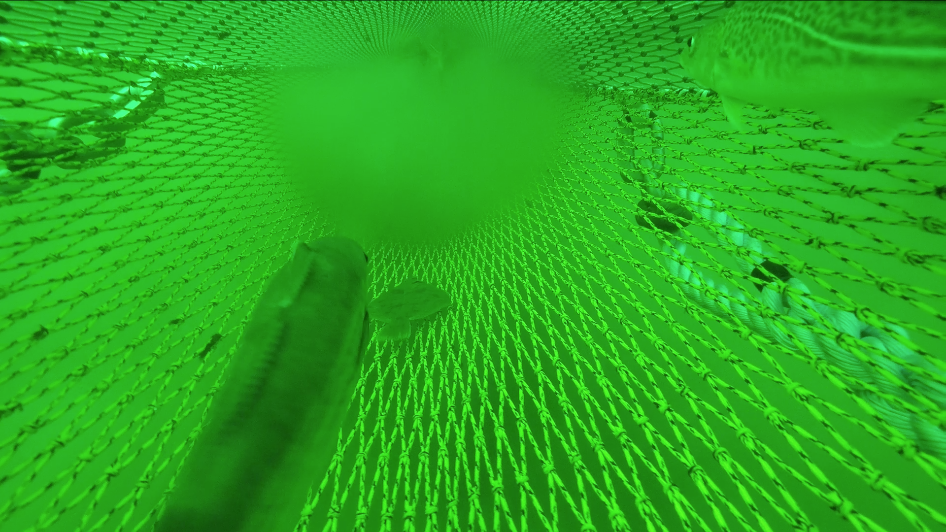 Installiert man solch ein Fluchtfenster im vorderen Teil des Netzes, entkommen zwar keine Kaisergranate – aber das Fenster wird von den Fischen auch kaum genutzt, da sie auch bei großen Maschen im Fluchtfenster das Netz eher meiden. Die Lösung könnte sein, die Fische vorn im Netz so zu stimulieren, dass sie die angebotenen Fluchtmöglichkeiten nutzen. In dem Beispiel haben wir sehr gute Erfolge erzielt, indem wir in der Nähe der Fluchtfenster Leinen mit Auftriebskörpern angebracht haben, die sich in der Strömung bewegen, die Fische im Netz irritieren und sie so nach oben zu den Fluchtfenstern lenken. Dadurch wird die Wahrscheinlichkeit des Entkommens der unerwünschten Fischart deutlich erhöht.