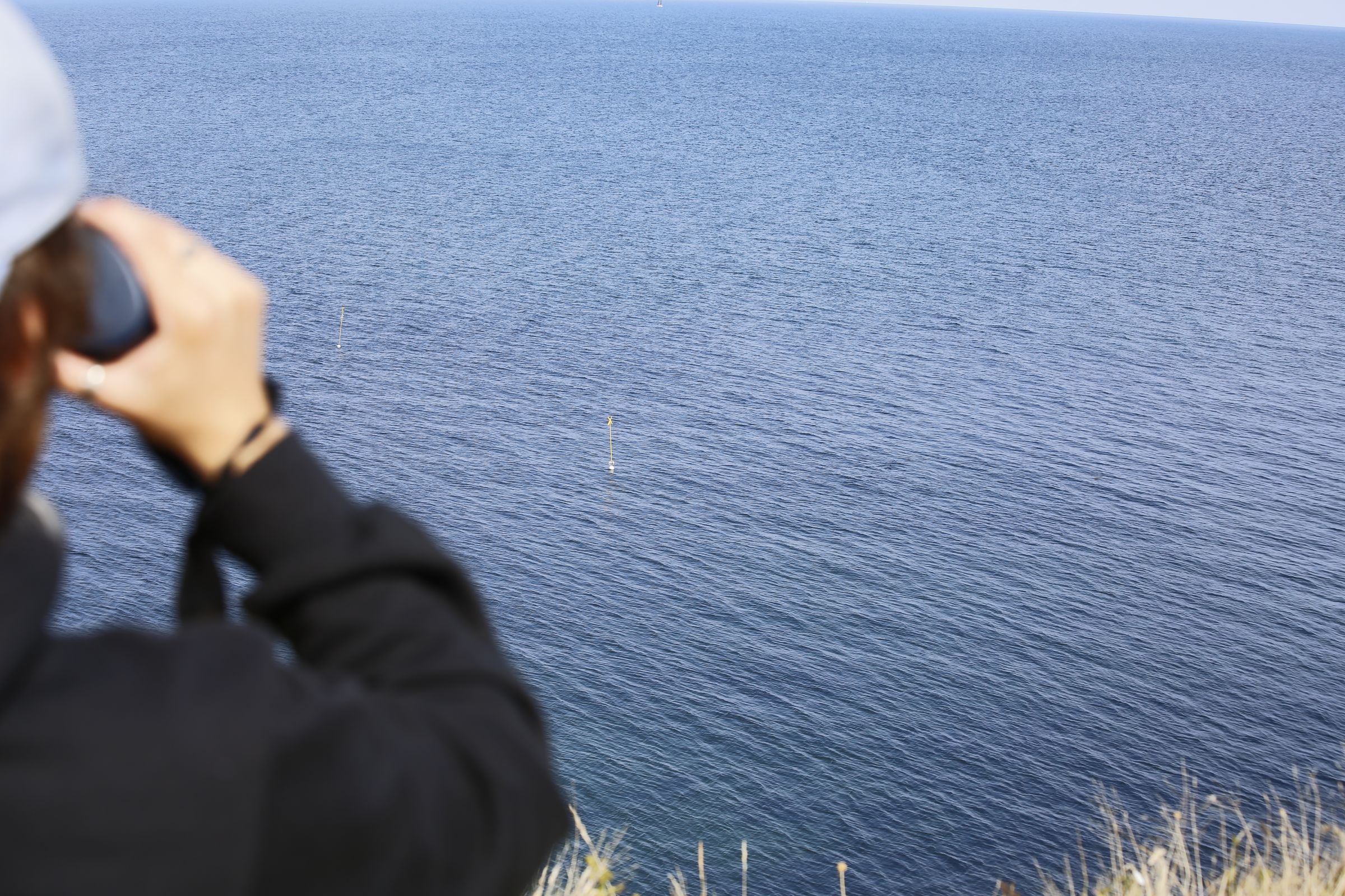 - Hoher Beobachtungspunkt von dem aus die Schweinswale beobachtet werden können, z.B. eine Klippe am Ufer
