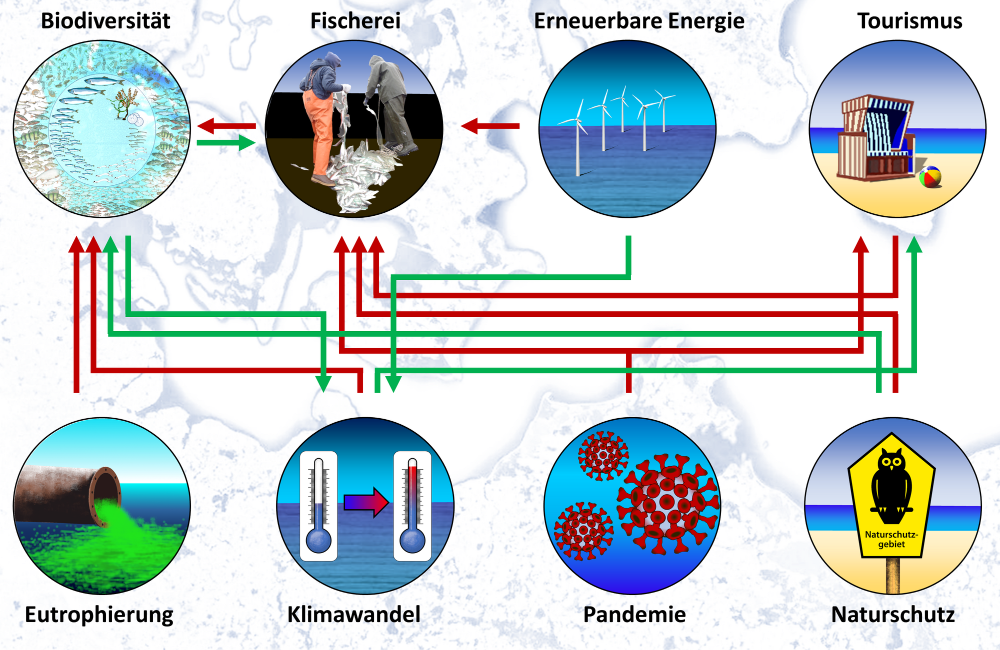 Marine Küstenökosysteme wie die westliche Ostsee stehen unter Druck. Ihre Biodiversität leidet unter negativen anthropogenen Effekten hervorgerufen durch den Klimawandel, Eutrophierung durch die Landwirtschaft und insbesondere die Überfischung. Die Küstenfischerei in der westlichen Ostsee ist dabei selbst durch direkte und indirekte Konsequenzen des Klimawandels und Biodiversitätsverlustes bedroht. Zum einen sinken die Bestände der Hauptzielarten Dorsch (Gadus morhua) und Hering (Clupea harengus) und damit auch die Konkurrenz mit der kleinen Hochseefischerei sowie der Angelfischerei. Zum anderen leidet die Küstenfischerei verstärkt unter räumlichen Konflikten mit der zur Mitigation des Klimawandels nötigen Produktion erneuerbarer Energien in Windparks sowie mit der Einrichtung von Naturschutzgebieten zur Reduzierung des Biodiversitätsverlustes. An Land steht die Küstenfischerei neuerdings zudem auch vermehrt im Konflikt mit dem zunehmenden Küstentourismus. Der Trend zu mehr Urlaubsaktivitäten an der heimischen Küste (zur Vermeidung von klima- und umweltschädlichem Flugverkehr) benötigt zunehmend Küstenraum, z.B. für Unterkünfte und Sportbootanleger, der traditionellerweise der Fischerei zur Verfügung steht. Die aktuelle Corona-Pandemie erhöht zusätzlich den Druck auf die Fischerei mit einem hohen Risiko des ökonomischen Zusammenbruchs und damit unvorhersehbaren sozialen und ökonomischen Konsequenzen für die Küstengemeinschaft der westlichen Ostsee.