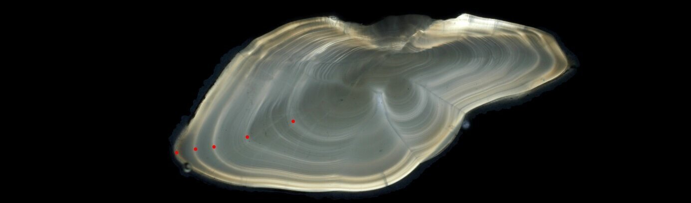 Für die Bestandsabschätzung von Fischen sind wir auf die Bestimmung des Alters der analysierten Tiere angewiesen, um wichtige Trends und Parameter wie Wachstums- und Sterblichkeitsraten abzuleiten. Die am weitesten akzeptierte Methode hat ihre Wurzeln in der Dendrochronologie, mit der das Alter eines Baumes durch das Zählen der Ringe im Stammquerschnitt ermittelt wird. In gleicher Weise kann das Alter von Fischen durch die Aufbereitung ihrer Gehörsteine, der sogenannten Otolithen, abgeleitet werden.