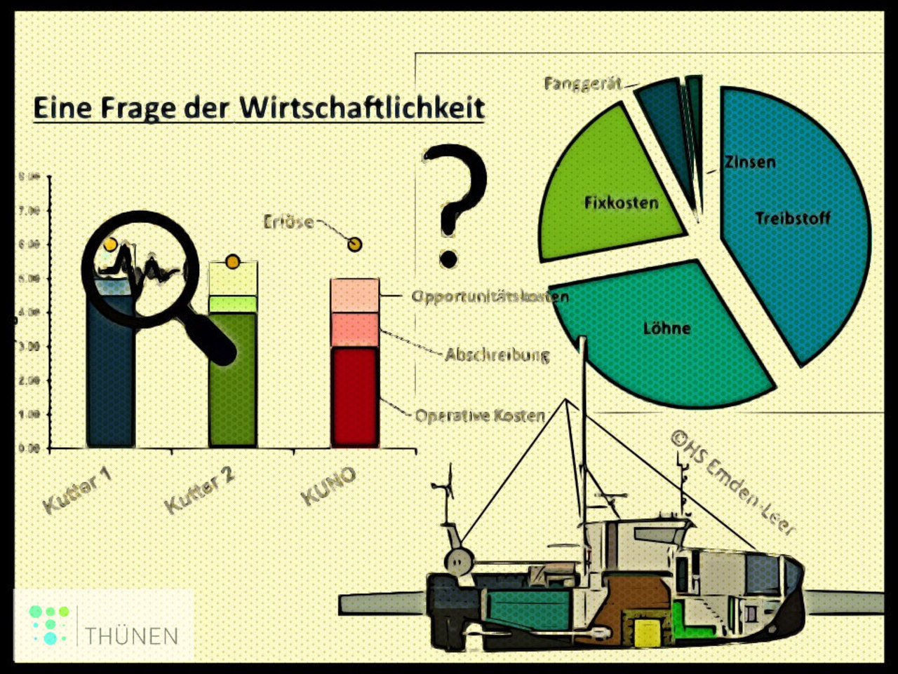 Bei unserer Arbeit steht die Wirtschaftlichkeit des Demonstrators unter dem Einsatz konventioneller und innovativer Fangtechniken und die gesellschaftliche Akzeptanz einer modernen, nachhaltigen Fischerei im Fokus. Das Thünen-Institut für Fischerei testet Fischereipraktiken unter Realbedingungen zusammen mit aktiven Fischern. Es kalkuliert Vollkosten und Profitabilität des Zukunftskutters unter Berücksichtigung verschiedenster Betriebsmodi und im internationalen Vergleich. In einer breiten Umfrage zum Image der Fischerei in der Bevölkerung und persönlichen Interviews mit Führungspersönlichkeiten entlang der Küste wird die gesellschaftliche Akzeptanz für den Einsatz des Zukunftskutters in der Nordsee untersucht. Eine Ausstattung der Fischerei mit modernen Fahrzeugen ergibt langfristig nur dann Sinn, wenn eine nachhaltige Fischerei von der Gesellschaft akzeptiert wird.