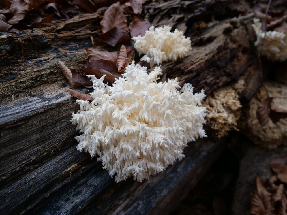 Pilze, die sich an absterbenden Bäumen oder Totholz im Wald ansiedeln, können die im Totholz gespeicherte Feuchtigkeit später wieder für Bäume nutzbar machen.