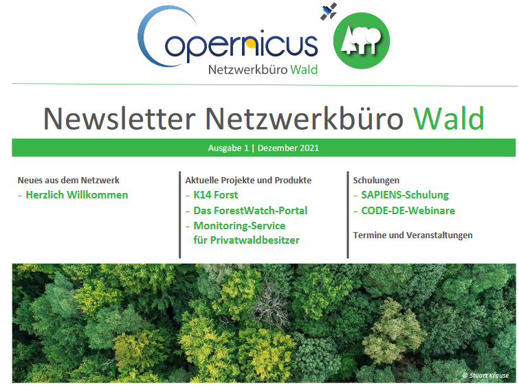 Als Copenicus Netzwerkbüro Wald wollen wir ein nationales Fachnetzwerk für Akteure der Fernerkundung mit dem Themenbereich Wald/Forst aufbauen (https://www.d-copernicus.de/daten/beispiele-und-anwendungen/wald-und-forstwirtschaft/). Ziel ist es, eine Schnittstelle zwischen dem DLR, forstlichen Einrichtungen auf Bundes-, Landes- und Regionalebene, Firmen und Forschungseinrichtungen zu schaffen. Darüber hinaus wollen wir beratend zur Seite stehen und die Nutzungsmöglichkeiten der Copernicus-Daten und Dienste bestmöglich vermitteln.