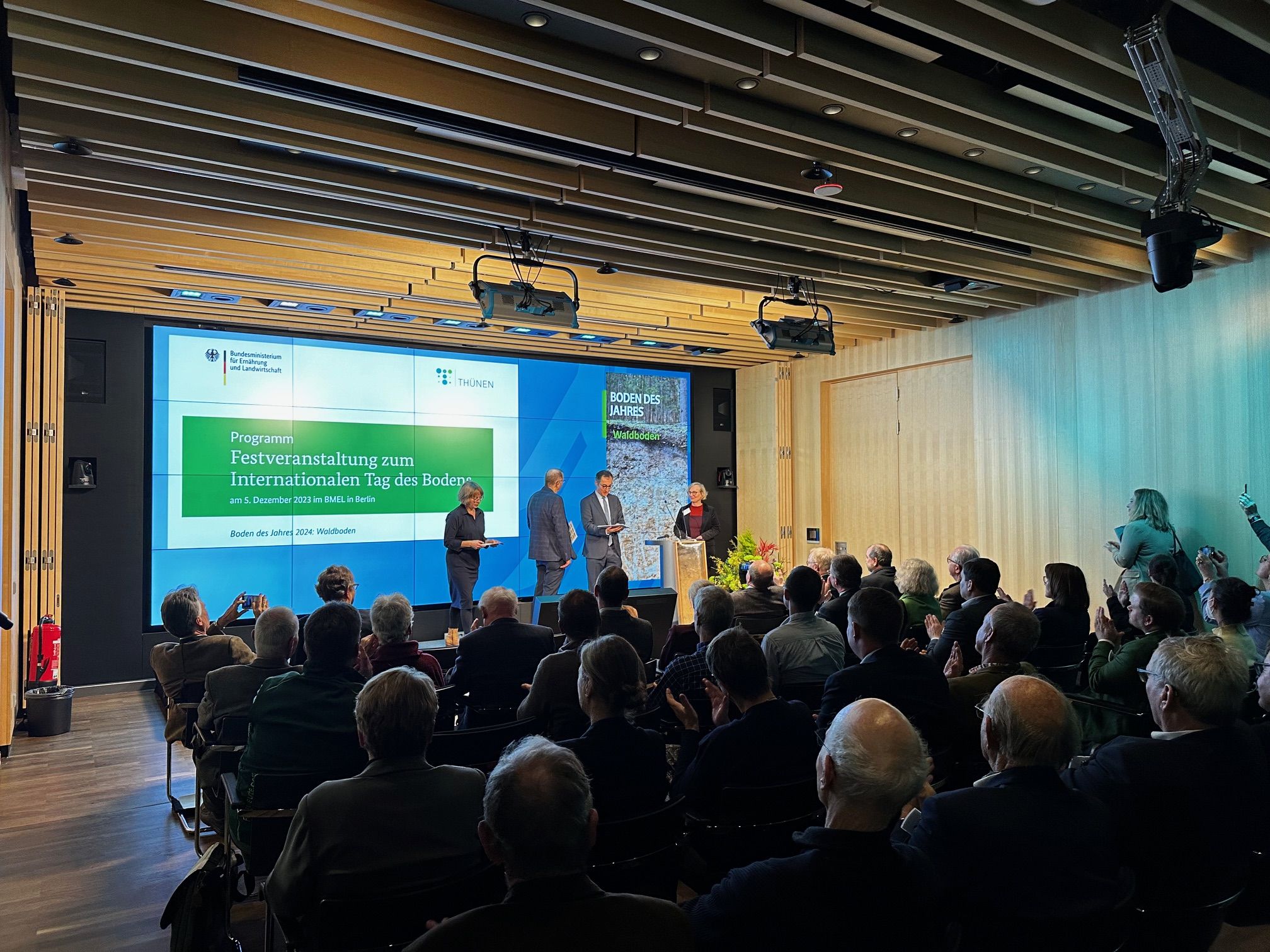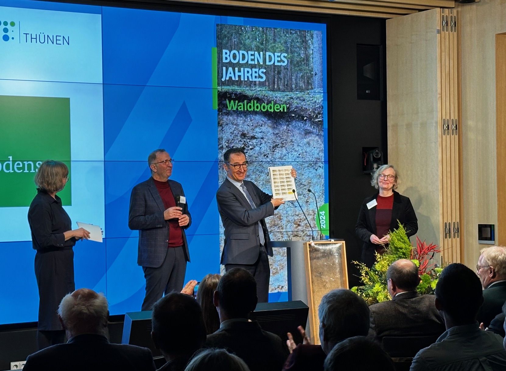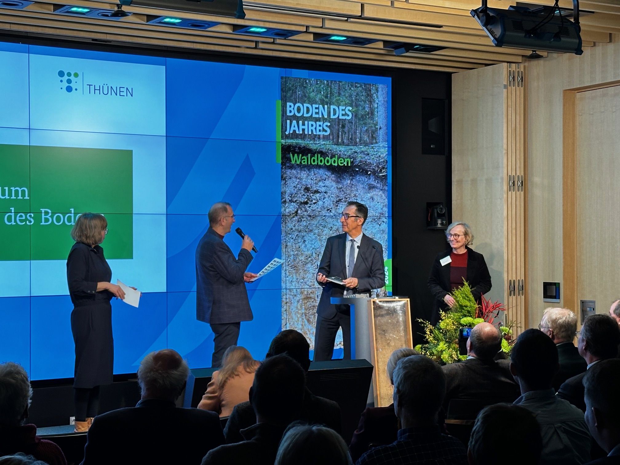 Vertreter der Waldbesitzenden, der Forschung, der Forstverwaltung und des Naturschutzes sprachen in einer Podiumsdiskussion über ihre Sichtweise auf den Waldboden. Das Publikum hatte Gelegenheit sich per Online-Chat zu beteiligen.