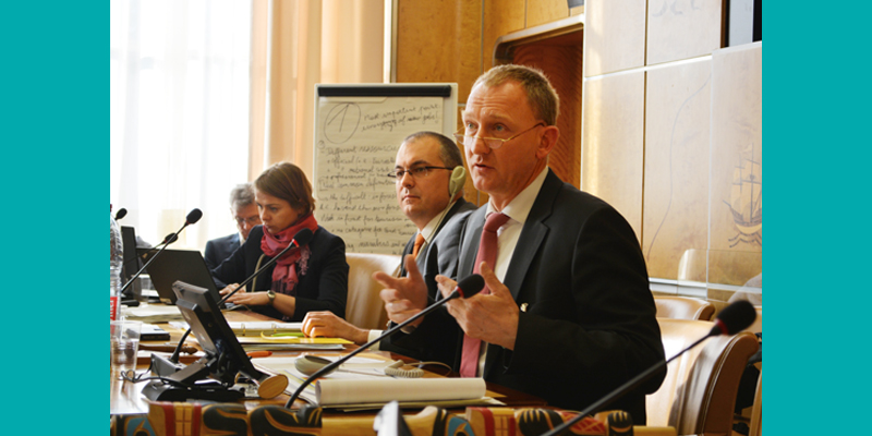 Die diesjährige Sitzung der gemeinsamen Arbeitsgruppe von FAO und UNECE zu Forststatistik, Forstökonomie und Waldbewirtschaftung vom 27.-29. März 2017 in Genf wurde von Prof. Dr. Matthias Dieter (rechts) als Vorsitzendem geleitet.