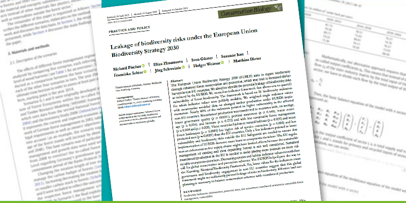 - Fischer R, Zhunusova E, Günter S, Iost S, Schier F, Schweinle J, Weimar H, Dieter M (2023) Leakage of biodiversity risks under the European Union Biodiversity Strategy 2030. Conserv Biol: Online First, Dec 2023, DOI:10.1111/cobi.14235