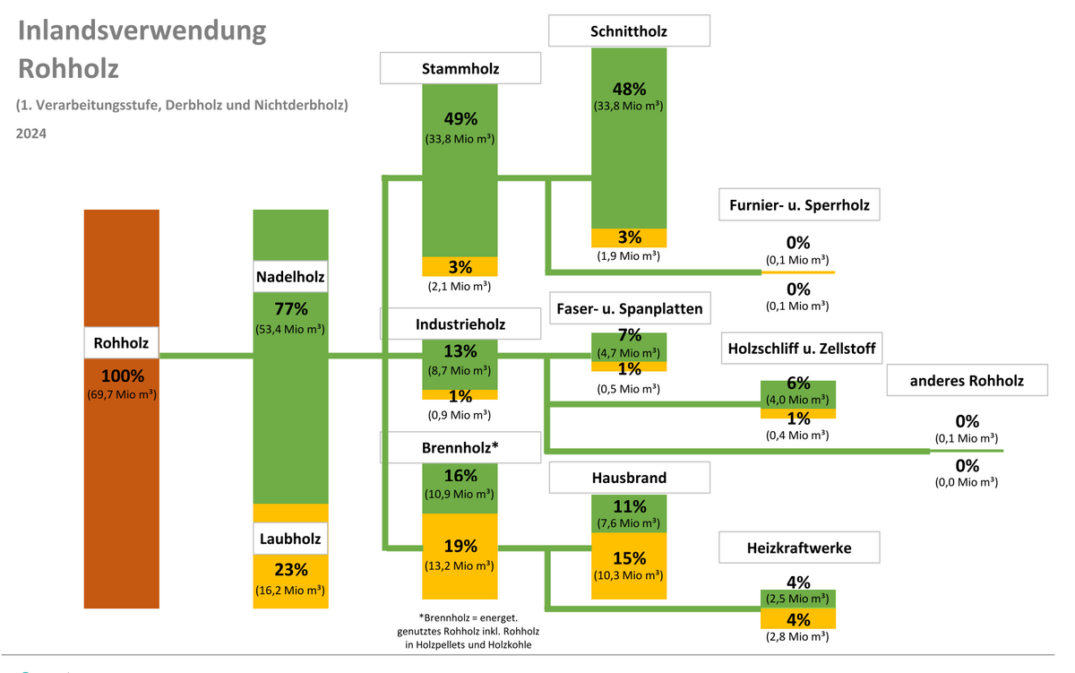 PDF Dokument (nicht barrierefrei) - Jochem D, Weimar H, Dieter M (2022) Holzeinschlag steigt im Jahr 2021 auf 84,2 Mio. m3: stoffliche Rohholzverwendung nahezu konstant - Anstieg der energetischen Nutzung - weiterhin hohe Nettorundholzexporte. Holz Zentralbl 148(41):713-714