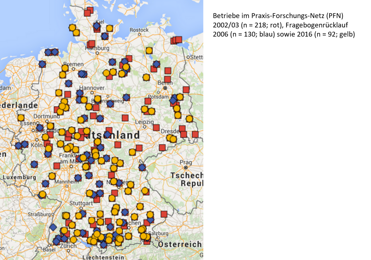 Im Teilprojekt des Thünen-Instituts für Ökologischen Landbau steht die Entwicklung und Förderung des Öko-Landbaus aus Sicht der Praxis im Mittelpunkt. Hierzu sollen 218 Ökobetriebe erneut befragt werden, die bereits im Rahmen eines Praxis-Forschungs-Projektes 2002-2003 an einer umfassenden Struktur- und Situationsanalyse des ökologischen Landbaus in Deutschland teilgenommen haben. Über eine schriftliche Befragung sollen insbesondere die Erwartungen und Probleme der Betriebe in den letzten 12 Jahren, die Entwicklungspfade der Betriebe und ihre Anpassung an veränderte agrarpolitische Rahmenbedingungen sowie ihre Zukunftsperspektiven und künftigen Entwicklungsstrategien untersucht werden. In einem zweiten Arbeitsschritt sind semi-strukturierte Interviews auf insgesamt 25 Betrieben geplant, um spezifische Aspekte und interessante Ergebnisse aus der schriftlichen Befragung vertiefend analysieren zu können.