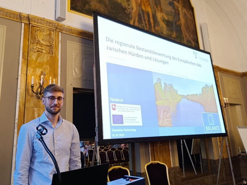 Wir freuen uns sehr: Am 1. Juli 2025 wurde Dr. Leander Höhne mit dem Förderpreis des Verbandes der Fischereiverwaltung und Fischereiwissenschaft e. V. (VDFF) ausgezeichnet. Seine am Thünen-Institut für Fischereiökologie erstellte Dissertation„Challenges and solutions in regionalized stock assessment of the European eel (Anguilla anguilla)“ überzeugte durch ihre hohe Relevanz für ein nachhaltiges Aalmanagement. Im Rahmen des Deutschen Fischereitages in Nürnberg präsentierte Dr. Höhne die Ergebnisse seiner Forschung, die im Projekt „BALANCE“ erarbeitet wurden. Wir gratulieren herzlich zu dieser verdienten Anerkennung!