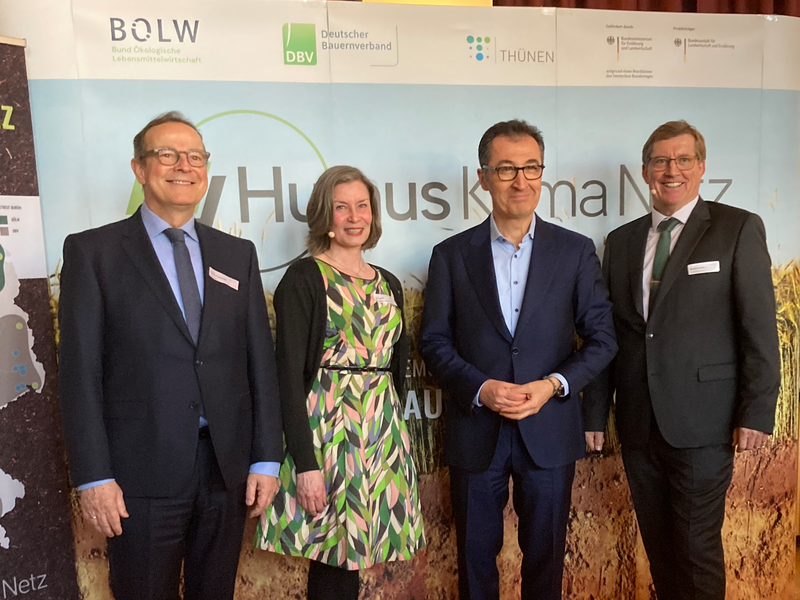 Rund 2,5 Milliarden Tonnen Kohlenstoff sind in den landwirtschaftlich genutzten Böden Deutschlands gespeichert. Das hat die Bodenzustandserhebung Landwirtschaft ergeben, die regelmäßig vom Thünen-Institut durchgeführt wird. Ein wesentlicher Kohlenstoffspeicher ist Humus. Dementsprechend betonte Cem Özdemir, Bundesminister für Ernährung und Landwirtschaft, während der Auftaktveranstaltung: „Humus aufbauen, das bedeutet, unser Klima zu schützen auf jedem Hektar Ackerboden. Das HumusKlimaNetz und jeder einzelne der 150 Betriebe, die teilnehmen, leisten einen wichtigen Beitrag, damit der Humusaufbau vorankommt.“