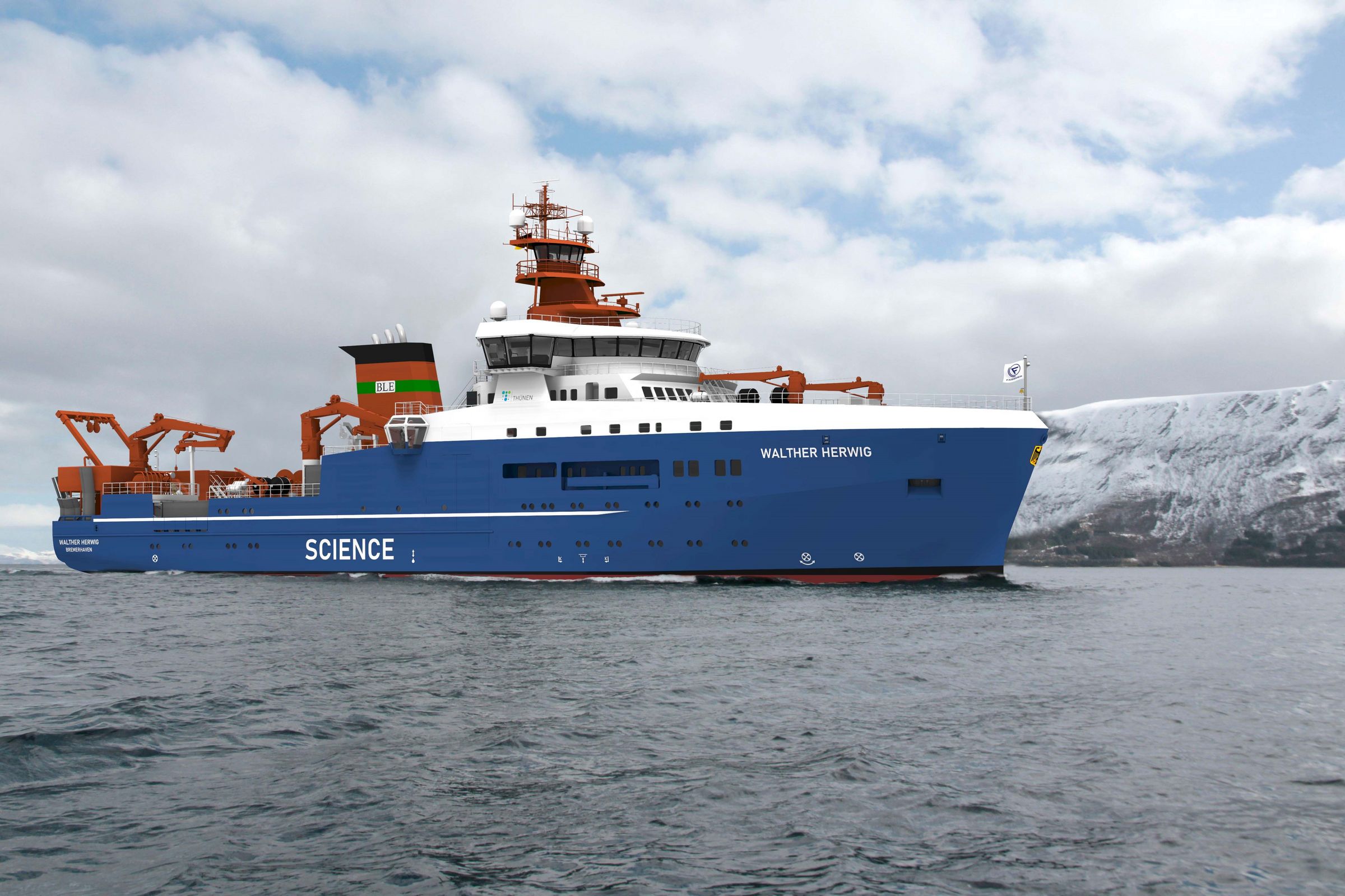 2027 soll die Bundesanstalt für Landwirtschaft und Ernährung (BLE) das Schiff als Reederin in Betrieb nehmen. Den Wissenschaftlerinnen und Wissenschaftlern des Thünen-Instituts wird mit diesem Schiff interdisziplinäre Fischereiforschung auf höchstem Niveau ermöglicht.