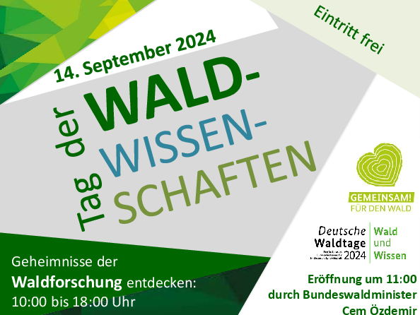 Offiziell eröffnet werden die Deutschen Waldtage von Cem Özdemir, Bundesminister für Ernährung und Landwirtschaft am Samstag, 14. September, um 11 Uhr beim Tag der Waldwissenschaften auf dem Waldcampus in Eberswalde. Die dort ansässigen wissenschaftlichen Einrichtungen, das Thünen-Institut für Waldökosysteme, die Hochschule für nachhaltige Entwicklung Eberswalde (HNEE), das Landeskompetenzzentrum Forst Eberswalde (LFE) und die Materialprüfanstalt Eberswalde, gestalten mit Unterstützung der Stadt Eberswalde einen Aktionstag für die ganze Familie.