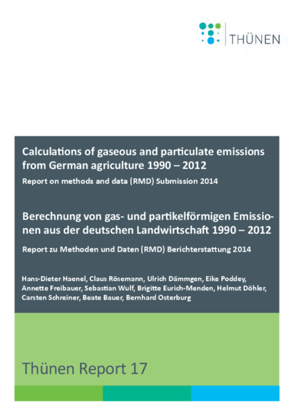 Berechnung von gas- und partikelförmigen Emissionen aus der deutschen Landwirtschaft 1990 – 2012