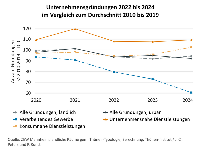Aktuelle Auswertungen des Thünen-Instituts für Innovation und Wertschöpfung in ländlichen Räumen zeigen nun: Zu 80 Prozent erfolgt der Stellenabbau des verarbeitenden Gewerbes in den ländlichen Räumen. Bundesweit ist die Zahl der Beschäftigten in diesem Wirtschaftssektor zwischen März 2022 und März 2025 um knapp 156.000 Personen gesunken. 125.000 dieser Stellen wurden von Unternehmen in ländlichen Räumen abgebaut. Gleichzeitig steigt die Arbeitslosigkeit beinahe flächendeckend und Unternehmensgründungen bleiben auf niedrigem Niveau.